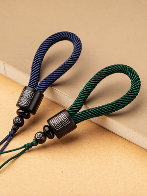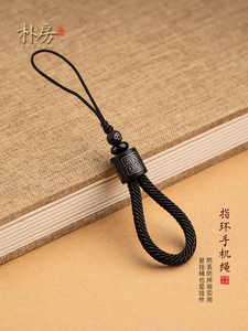 朴房原创手机挂绳短款防丢手编檀木指环绳男女士复古风手机链挂件
