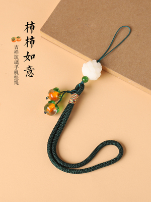 柿柿如意手机挂件短款手腕挂绳男女古风琉璃柿子长款挂脖挂坠U盘