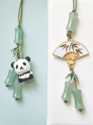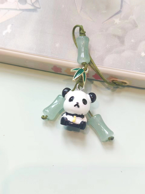 小曹手工竹节熊猫上岸手机挂件链小众女精致国风汉服u盘挂绳吊坠