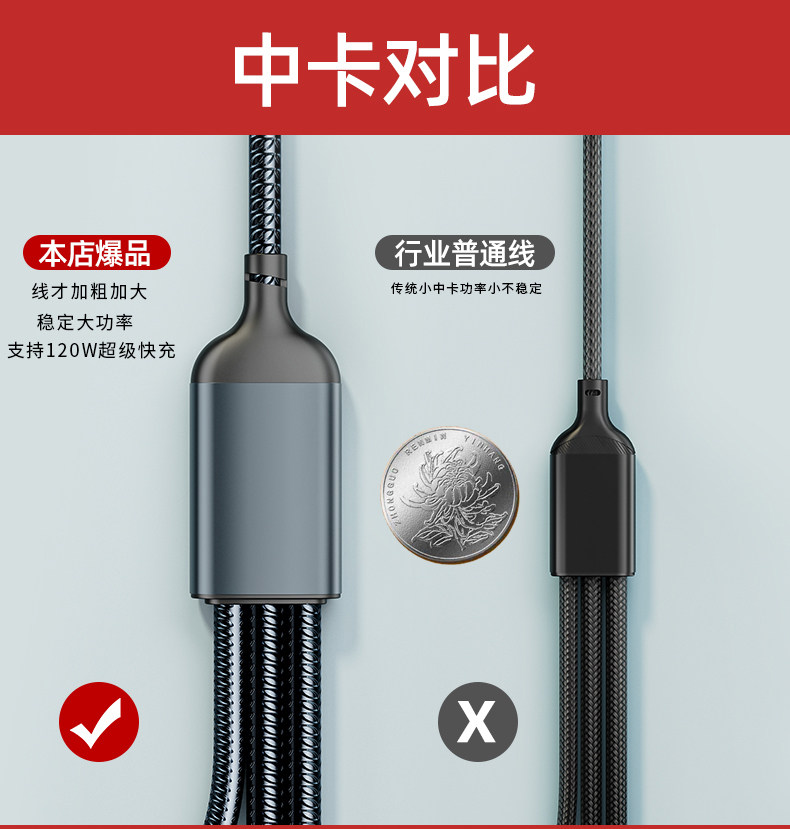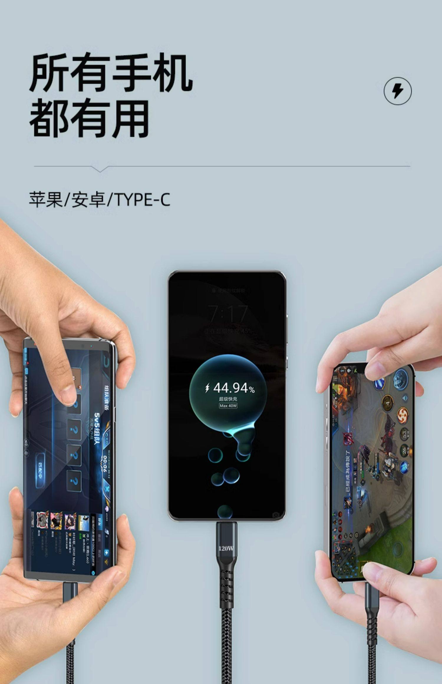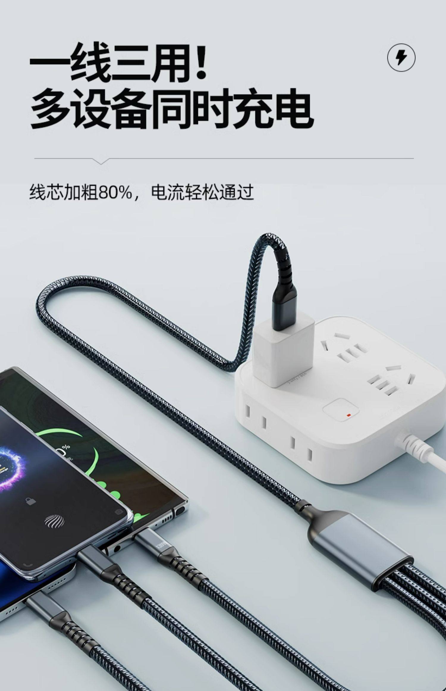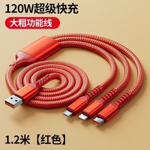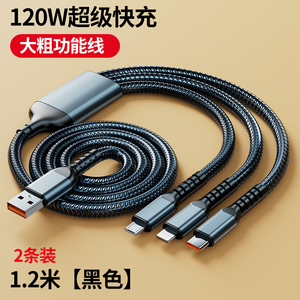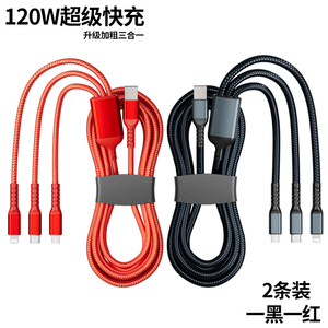 120W超级快充100W三合一数据线充电线一拖三加粗长logo小礼品三头手机通用多功能适用于苹果华为TYPE-C66
