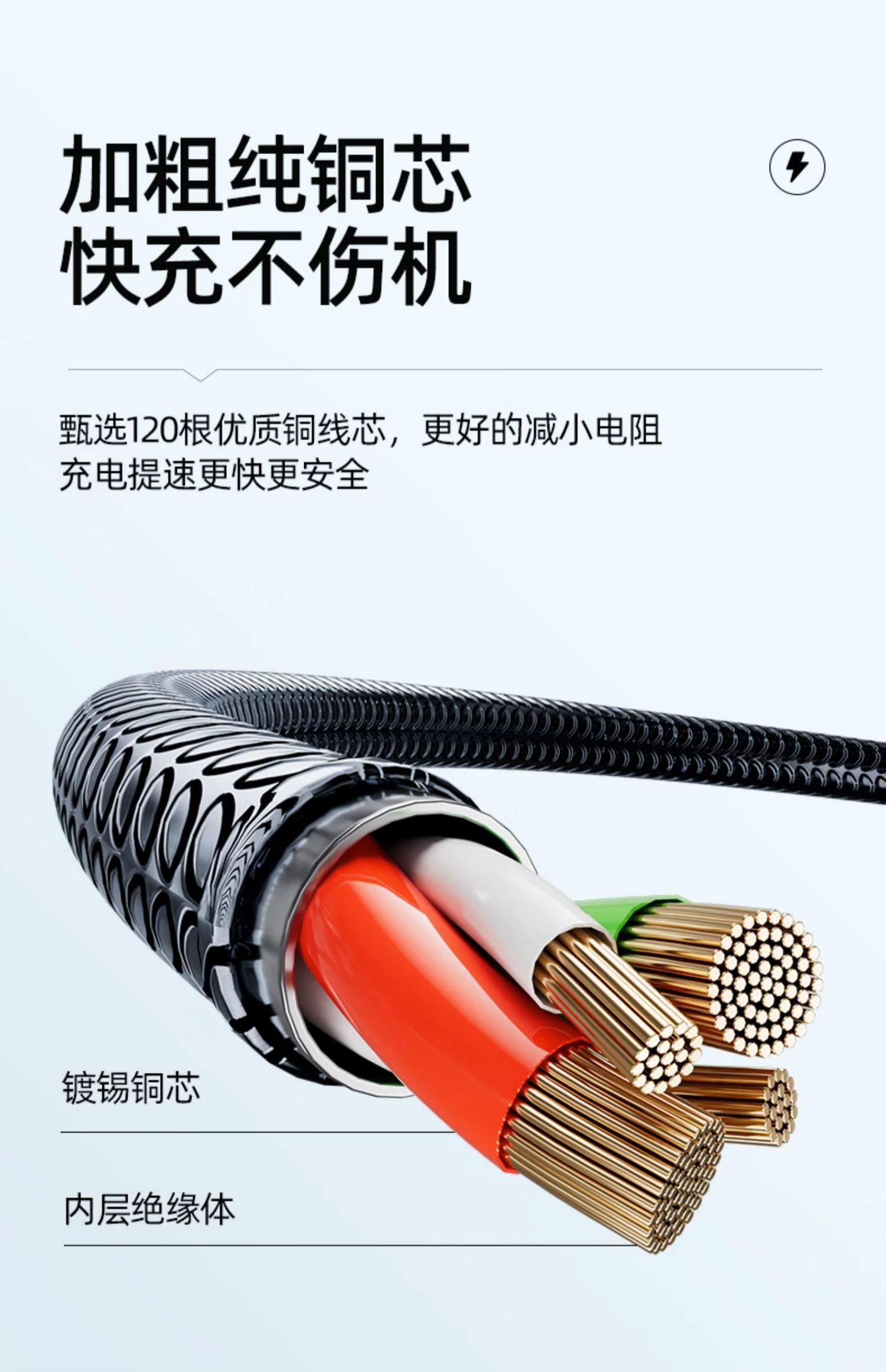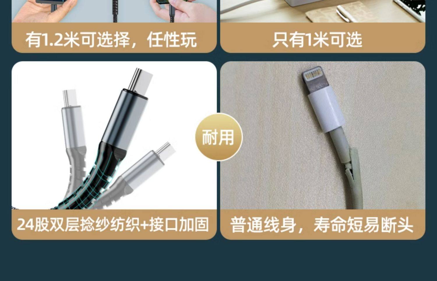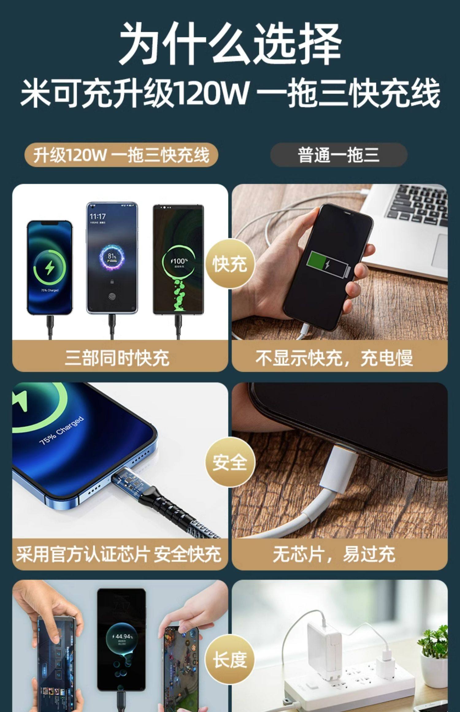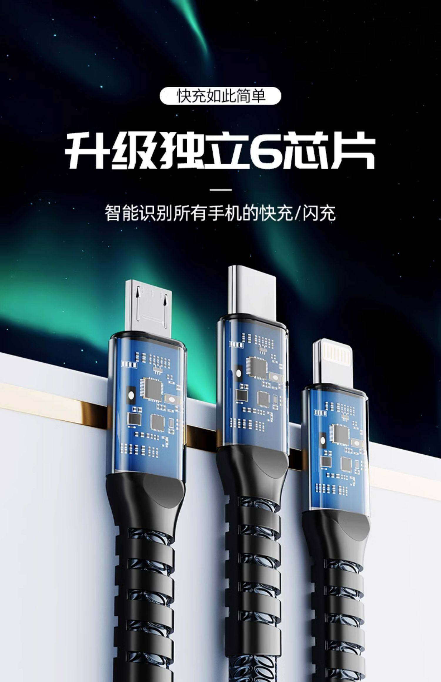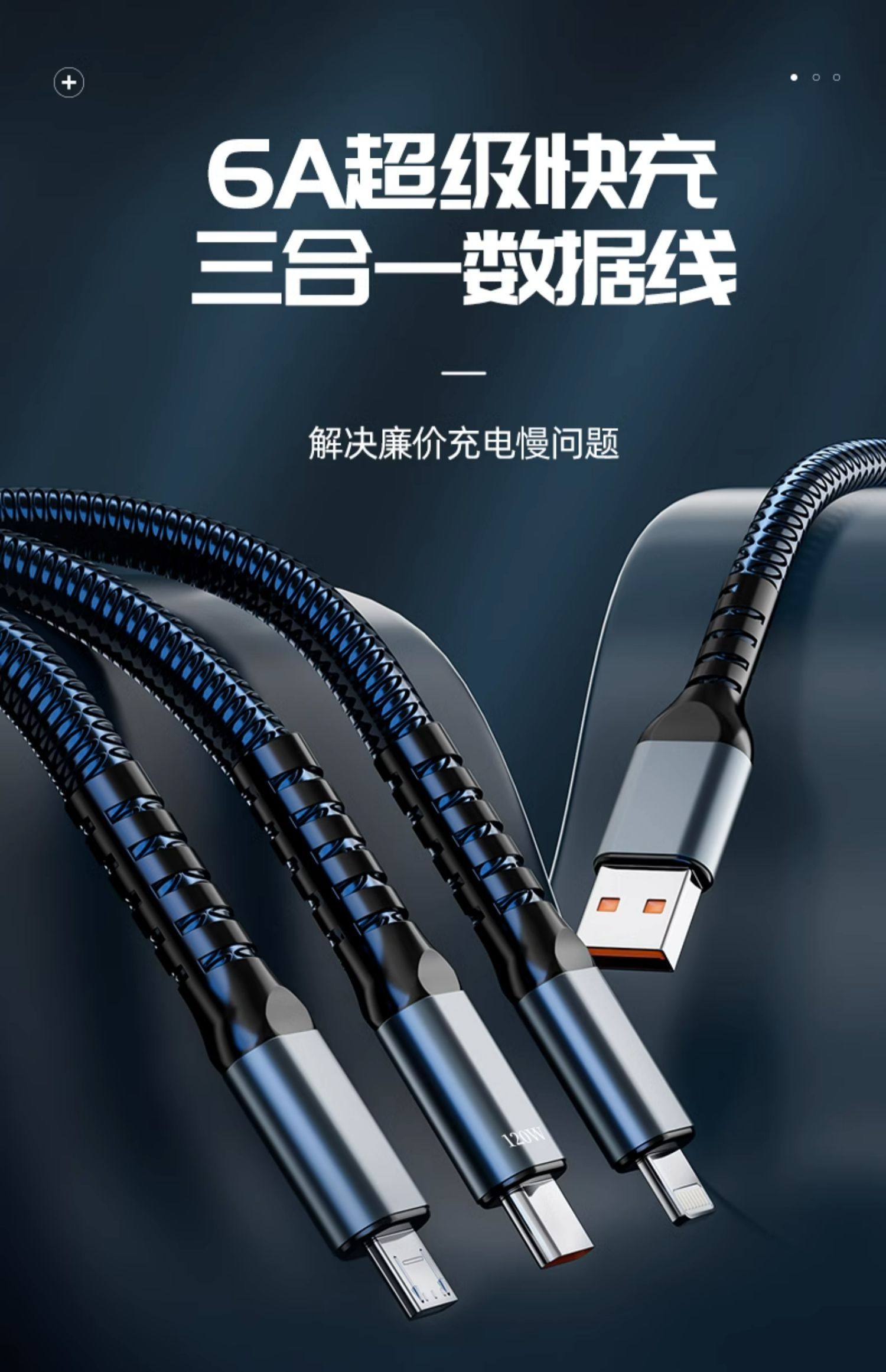 商品名称:120W超级快充100W三合一数据线充电线一拖三加粗长logo小礼品三头手机通用多功能适用于苹果华为TYPE-C66