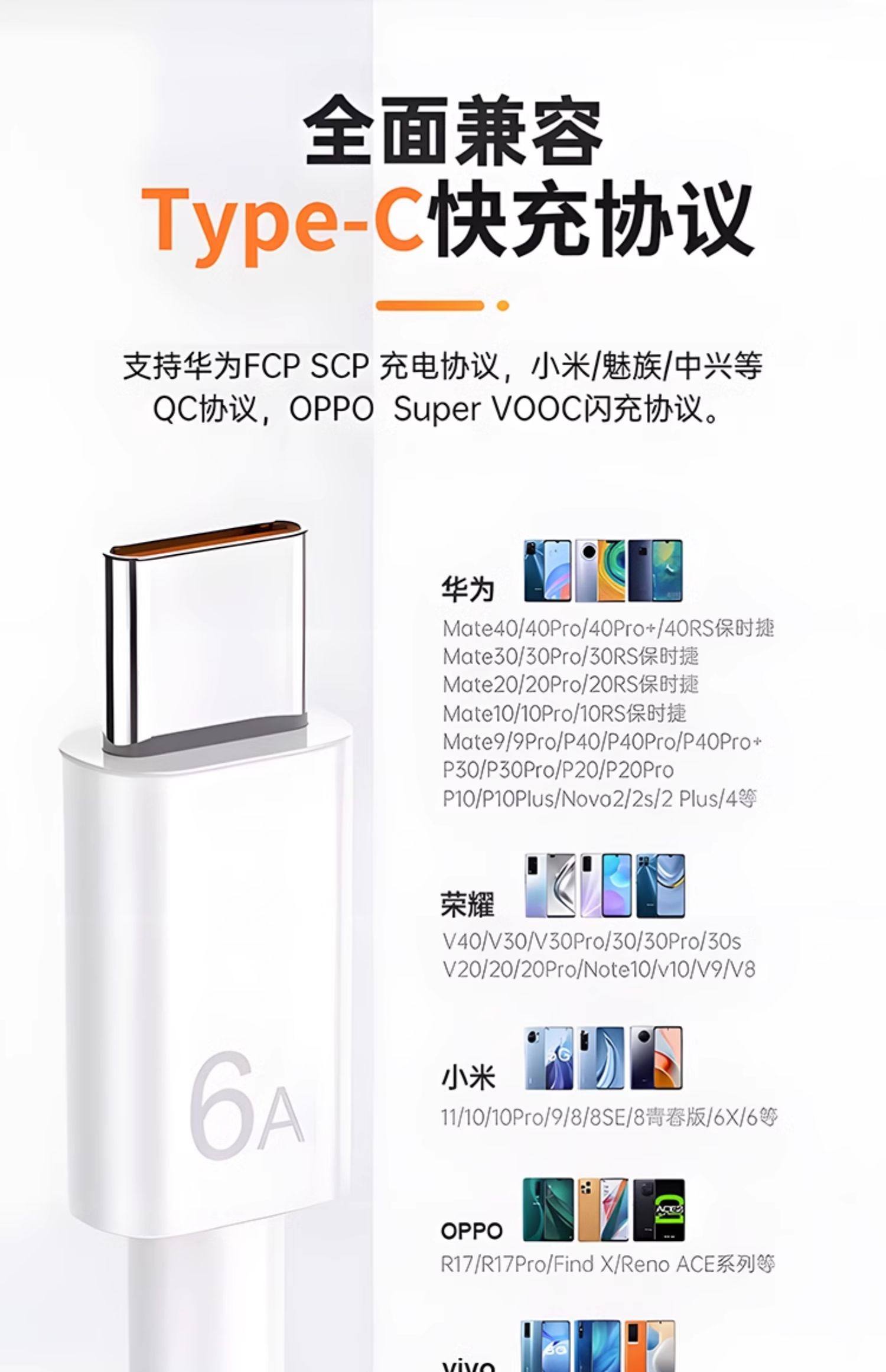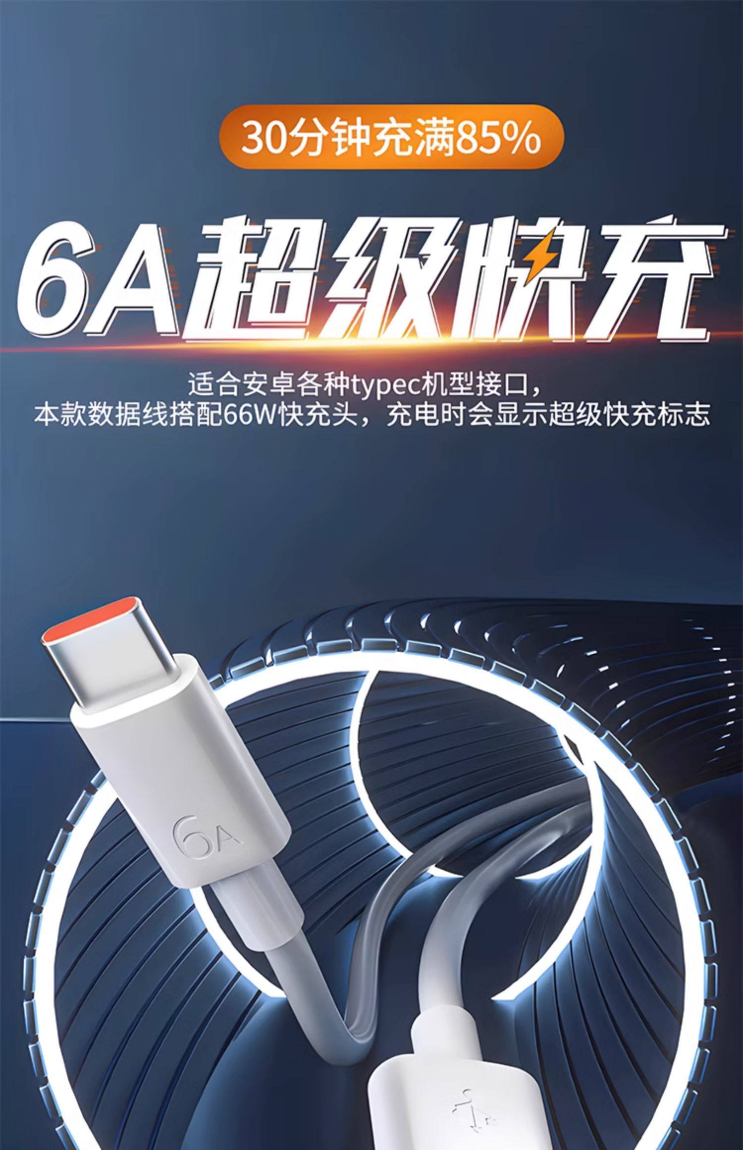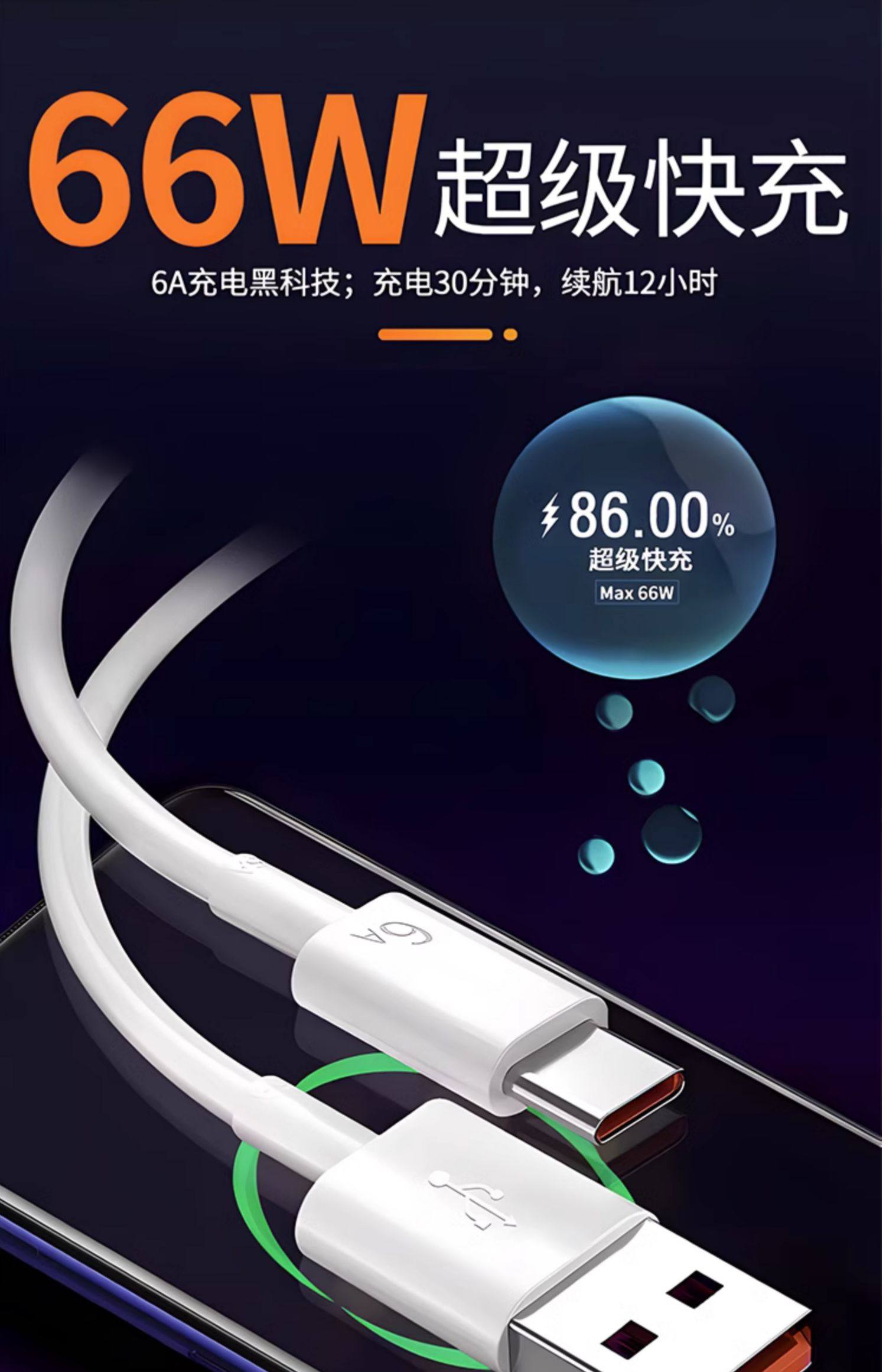 商品名称:Typec数据线6A超级快充适用华为充电线mate50pro/40pro/P50手机荣耀60加长tpyec充电器线nova9/8小米安卓通用