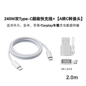 【高性价比推荐】120W A转C转接头【雅士银】+240W双TC白编织线2米