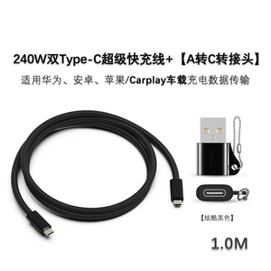 【高性价比推荐】120W A转C转接头【炫酷黑】+240W双TC黑编织线1米