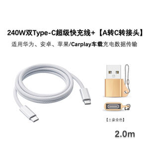 【高性价比推荐】120W A转C转接头【土豪金】+240W双TC白编织线2米