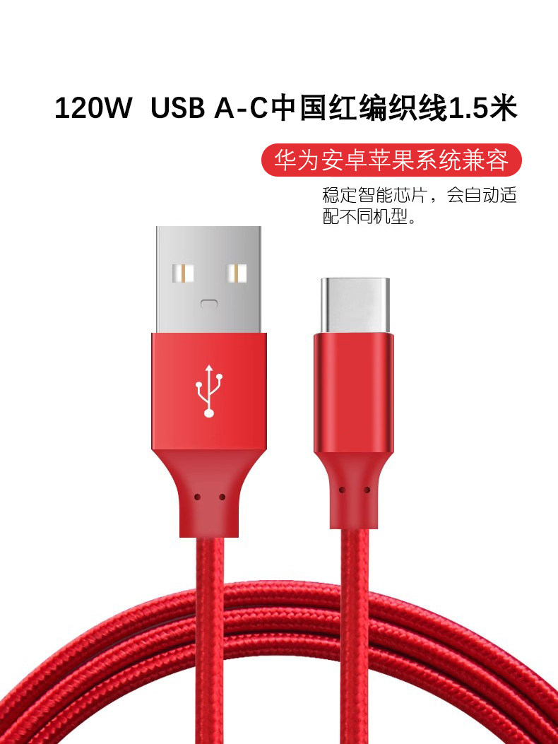 120W超级快充 【1.5米】USB转Type-C中国红编织线