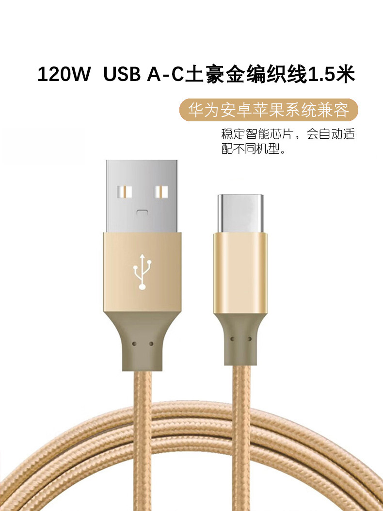 120W超级快充【1.5米】 USB转Type-C土豪金编织线