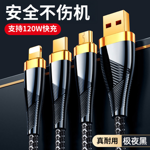 【德国品质】三合一快充数据线一拖三充电线6A手机车载适用华为mate70苹果16安卓多头三头3多功能typec充电宝