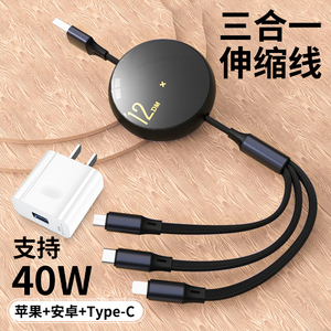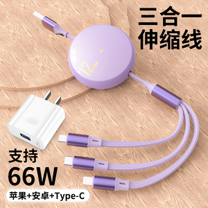 商品名称:【德国品质】三合一快充数据线一拖三充电线6A手机车载适用华为mate70苹果16安卓多头三头3多功能typec充电宝