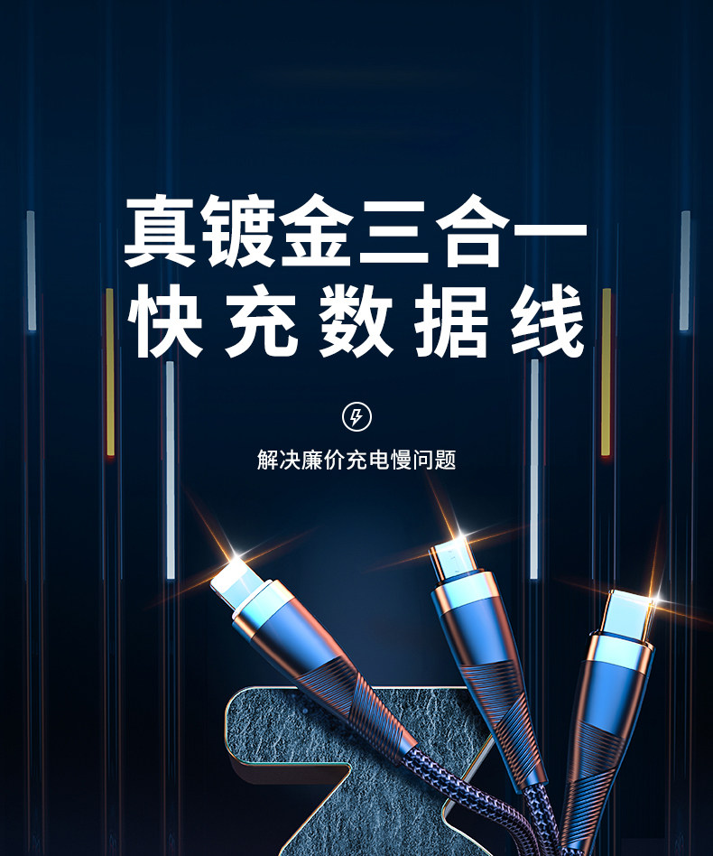 『标配头+三合一线』星空黑★快充不伤机★真低温耐用