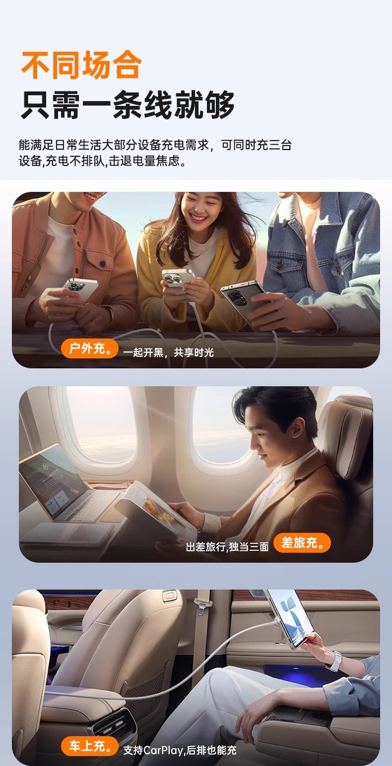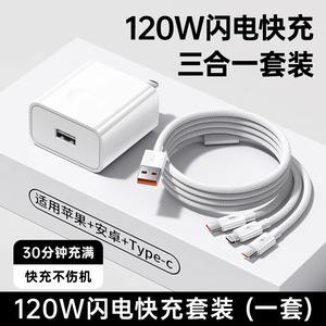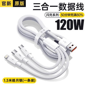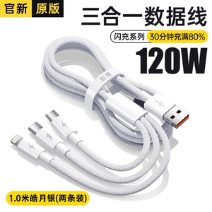 商品名称:简棠数据线三合一充电线器tpyec一拖三超级快充100W适用苹果华为安卓vivo多功能usb车载typec通用头6a编织66W