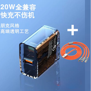【20W冰透快充头】+1.2米一拖三橘色极客线