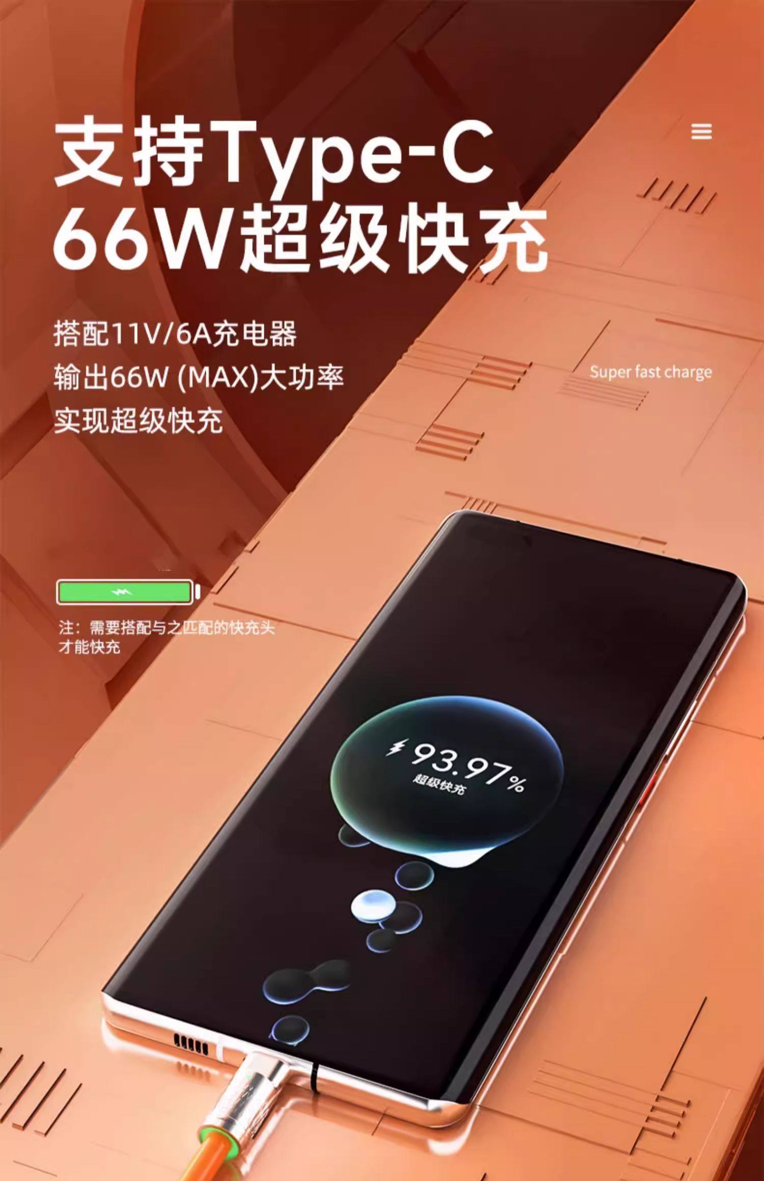 【JY66W快充头+2米一拖三120W超级快充赤橙橘】