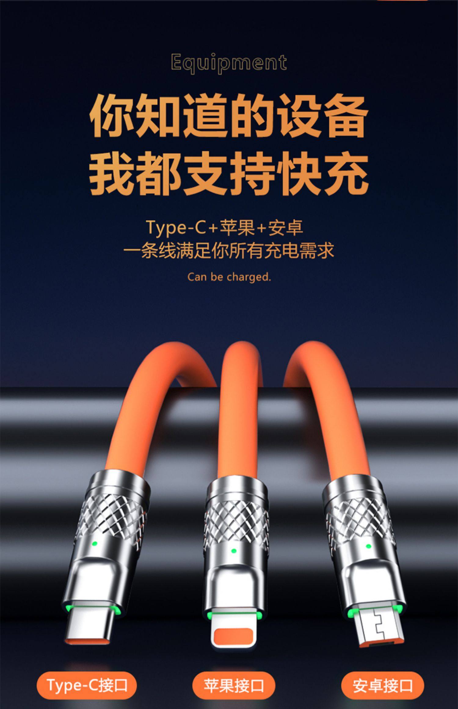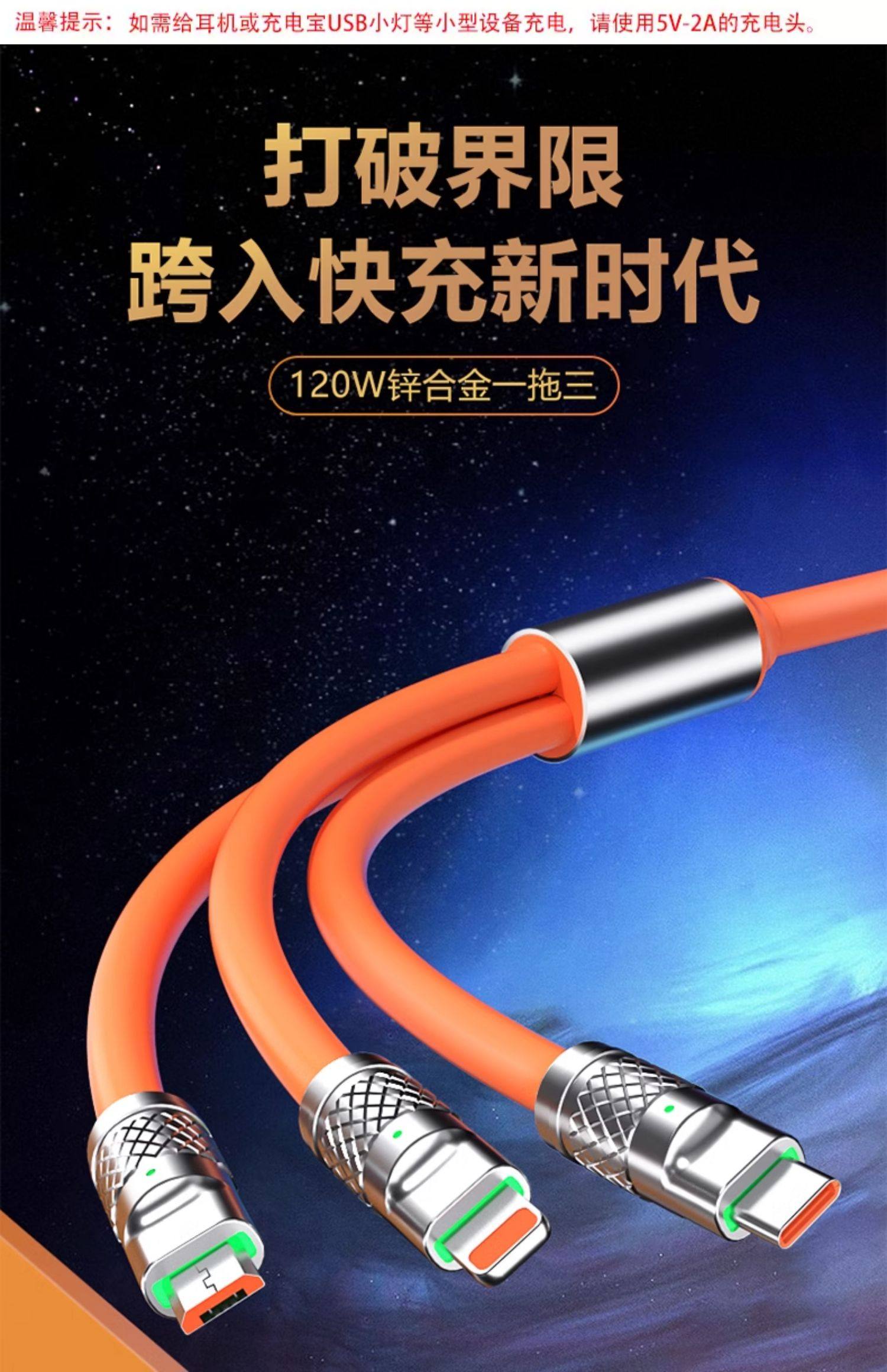 【5w充电头+1.2米一拖三120W超级快充赤橙橘】
