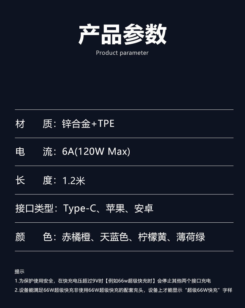 1.2米机客线120W超级快充【赤橙橘1条+天空蓝1条】两条装