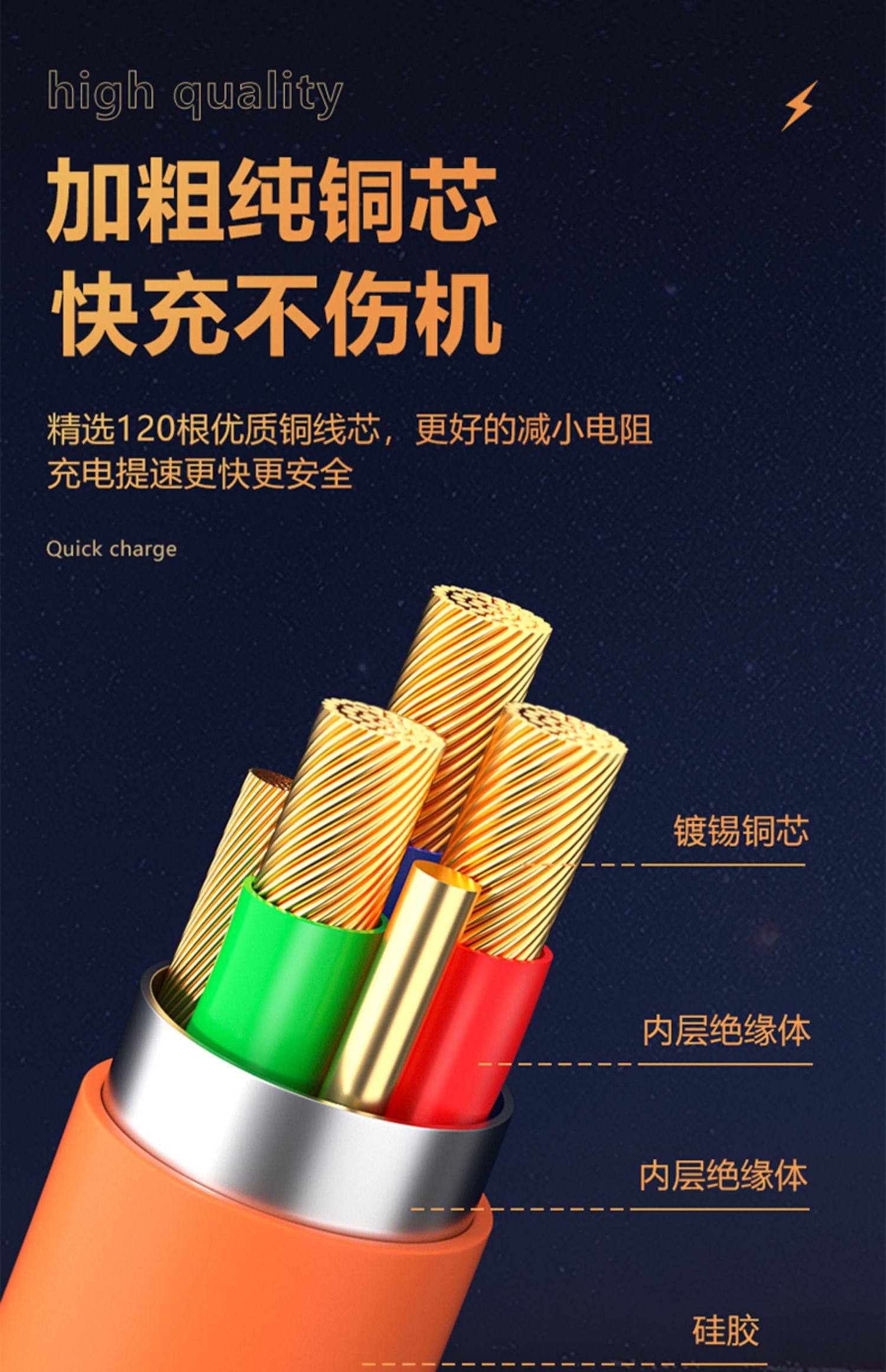 1.2米机客线120W超级快充【赤橙橘】一拖三【两条装