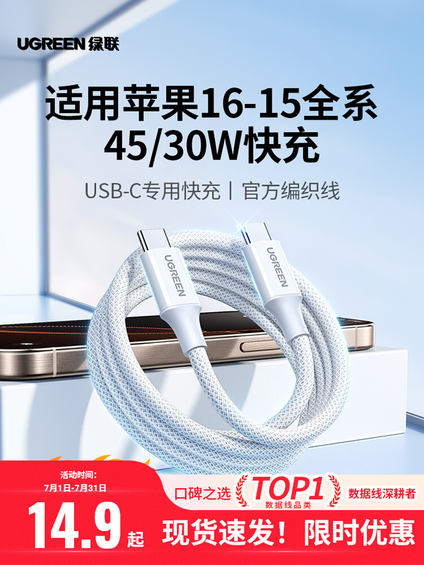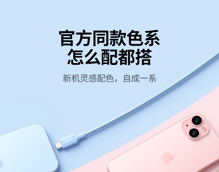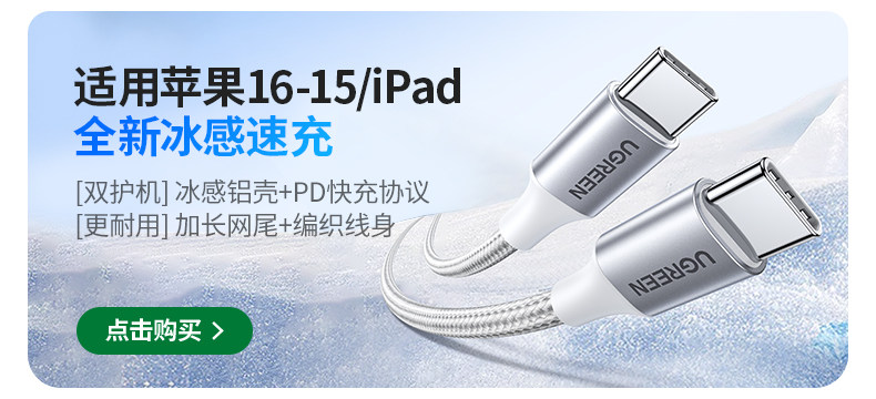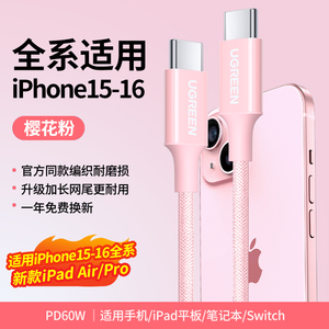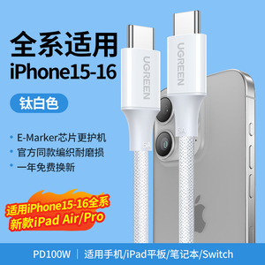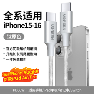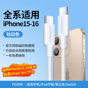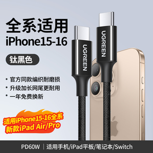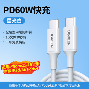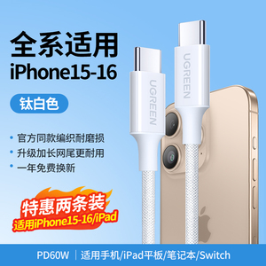 绿联适用苹果16iPhone15promax/airpods4ipad华为手机充电宝线器双typec官方数据线pd60W原快充套装转ctoc口