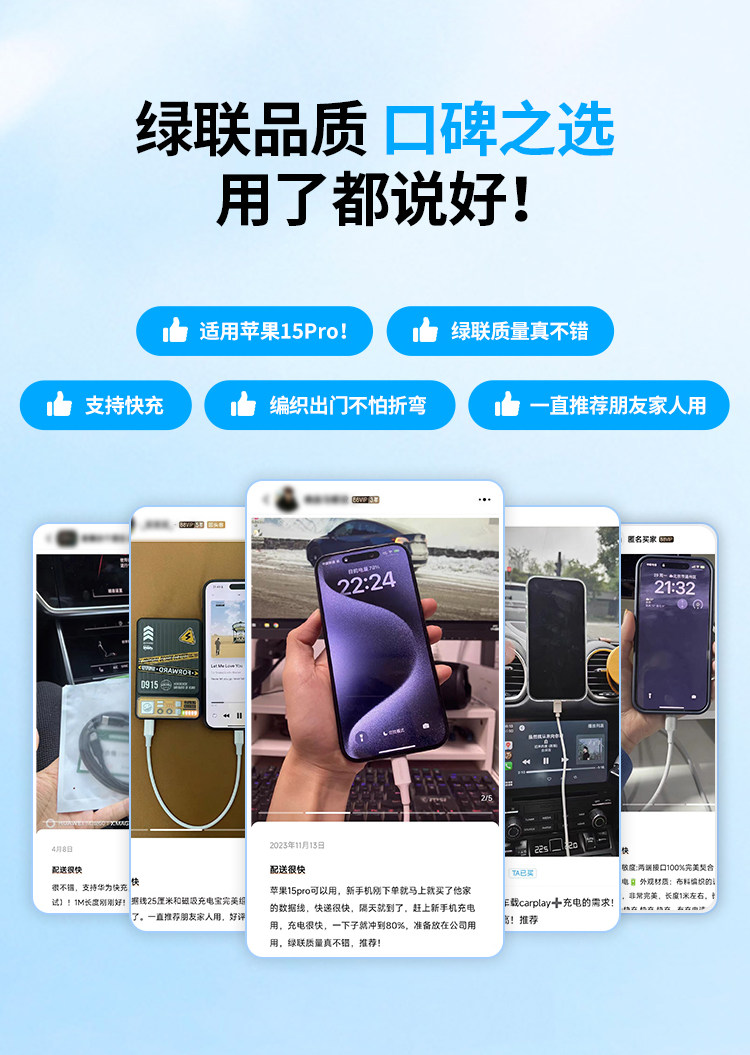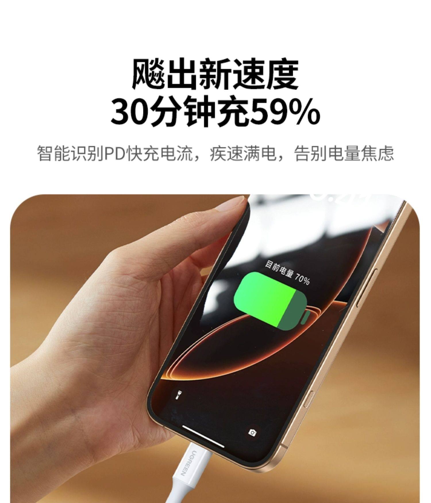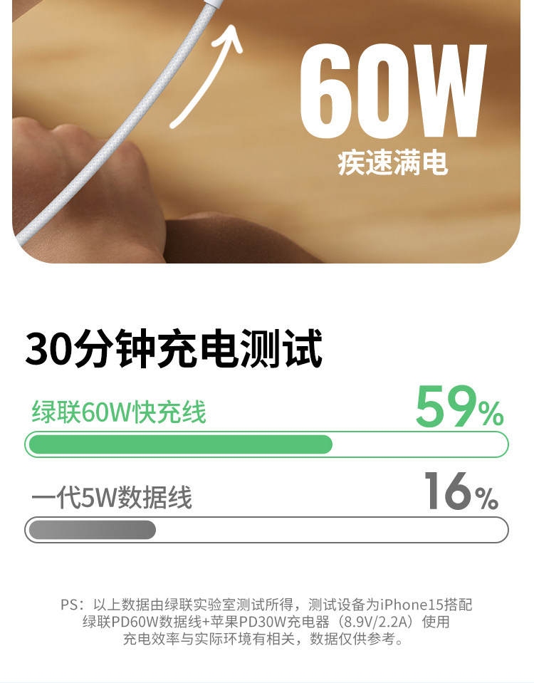 商品名称:绿联适用苹果16iPhone15promax/airpods4ipad华为手机充电宝线器双typec官方数据线pd60W原快充套装转ctoc口
