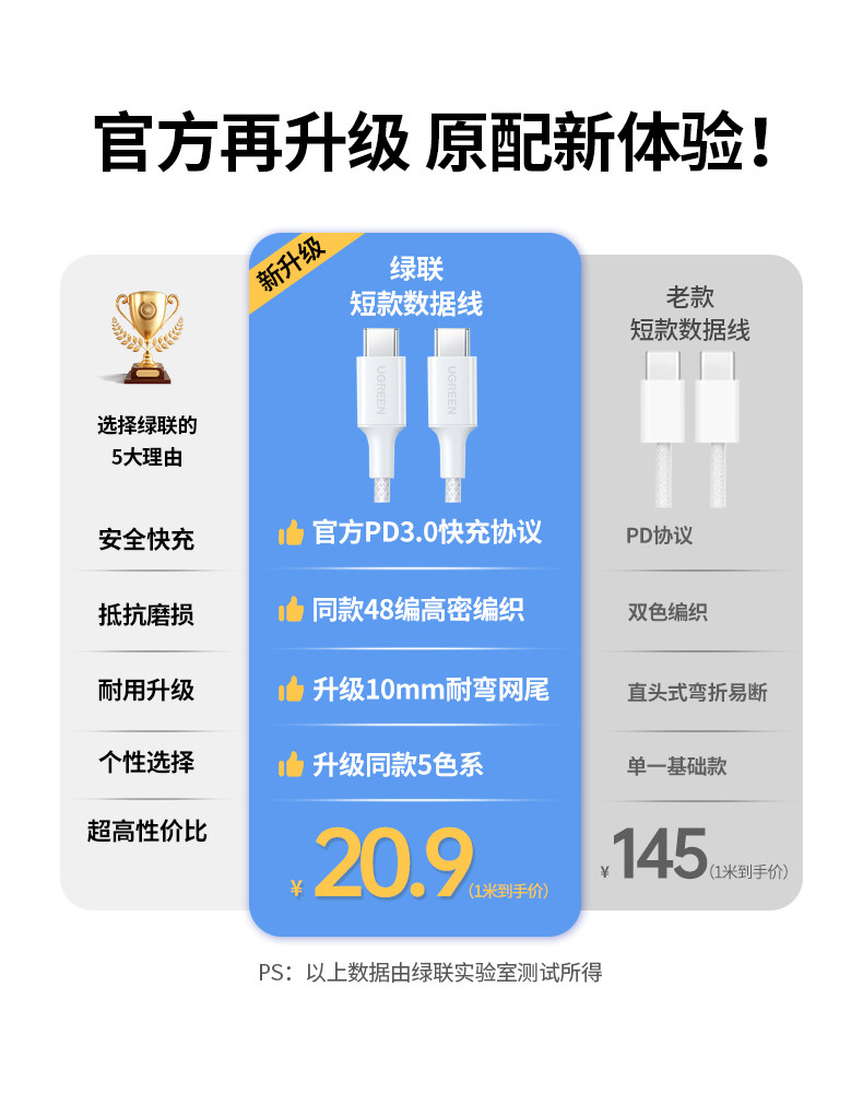 数据线功能:数据传输 充电