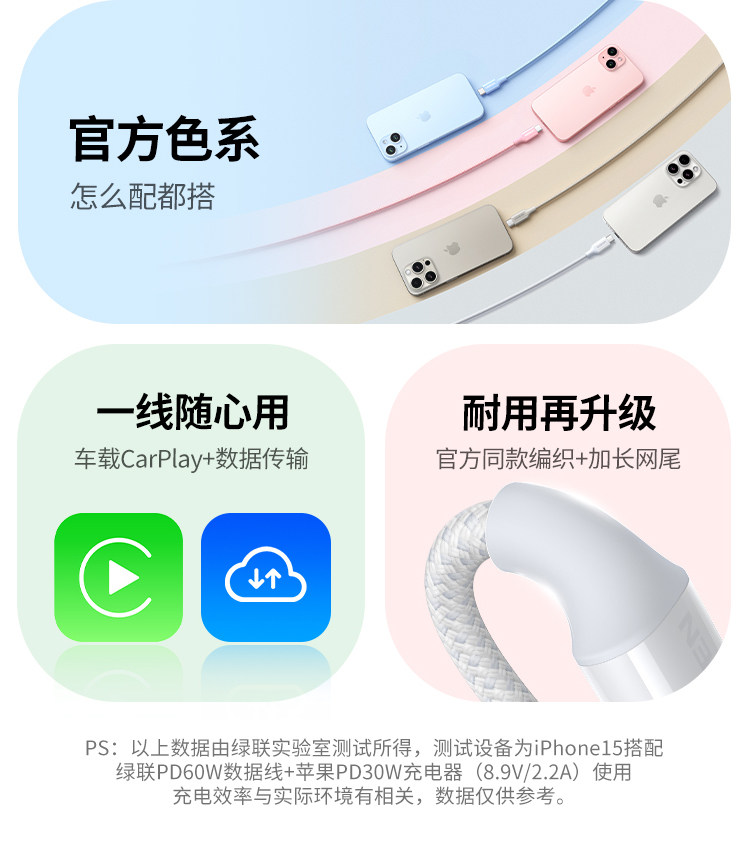 适用iPhone16-15全系【A-C★官方编织】适用CarPlay车载投屏/小米/三星/vivo/oppo