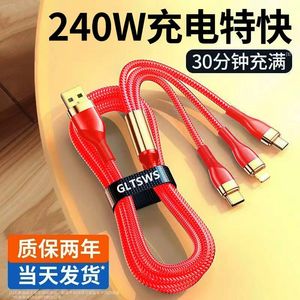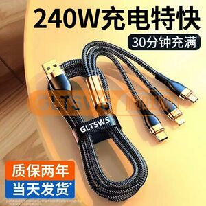 240w快充数据线三合一手机充电线一拖三正品适用于安卓苹果iphone华为小米vivo闪充车载三头多功能接口三线