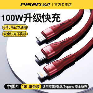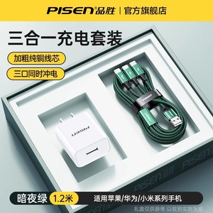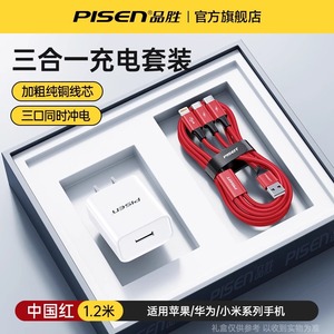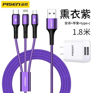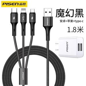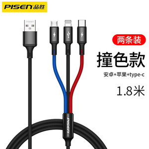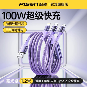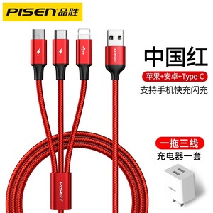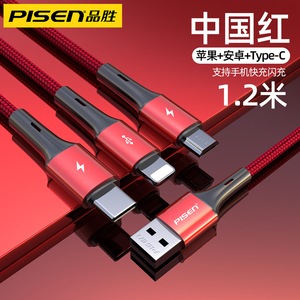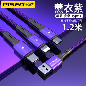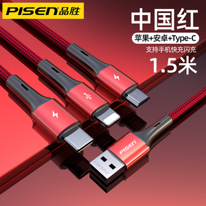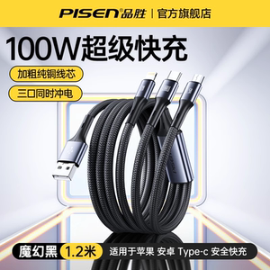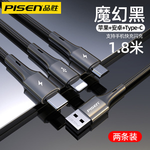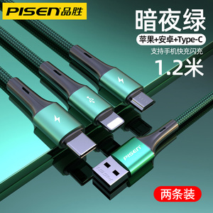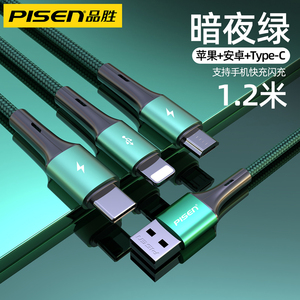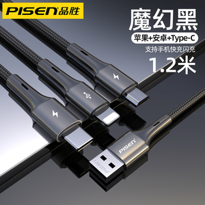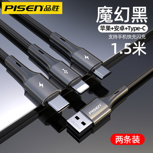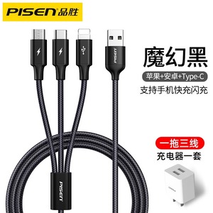 品胜适用iPhone13数据线三合一快充适用苹果12充电线一拖三车载加长typec多口多头通用插头闪充平板笔记本冲