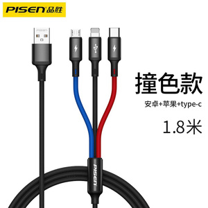 商品名称:品胜适用iPhone13数据线三合一快充适用苹果12充电线一拖三车载加长typec多口多头通用插头闪充平板笔记本冲