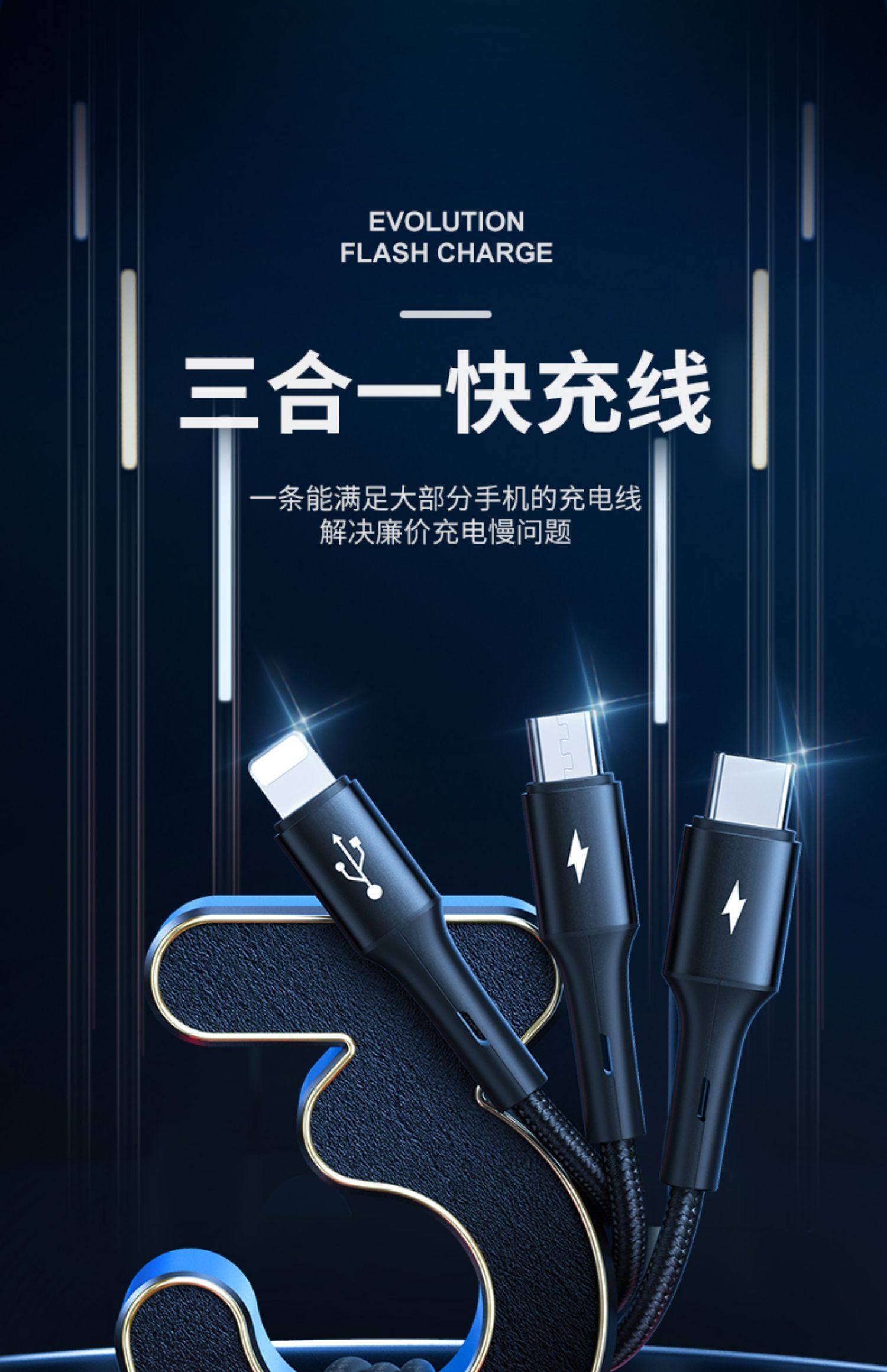 型号:三合一数据线/充电线