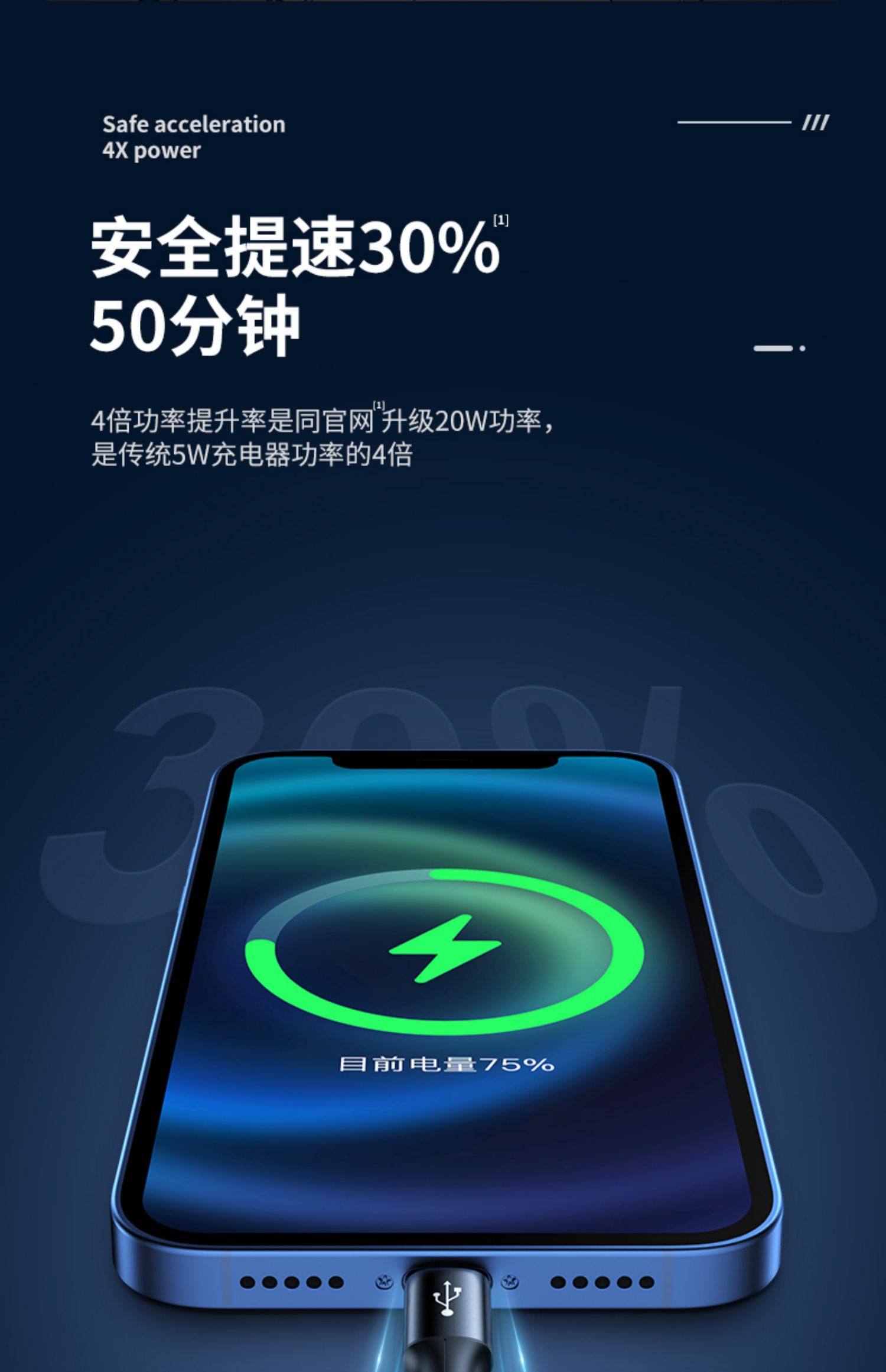 【100W超级快充】魔幻黑1.2米◆安全快充不伤机