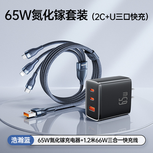 苹果6-16◆氮化镓快充套装★65W氮化镓充电器+浩瀚蓝1.2米66W三合一快充线