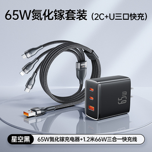 苹果6-16◆氮化镓快充套装★65W氮化镓充电器+星空黑1.2米66W三合一快充线
