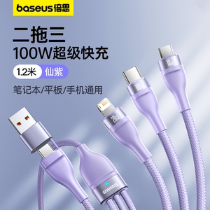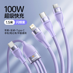 闪蝶紫1.2米[苹果6-16+安卓+Type-C]升级100W二拖三快充