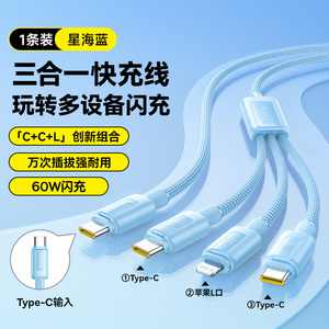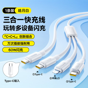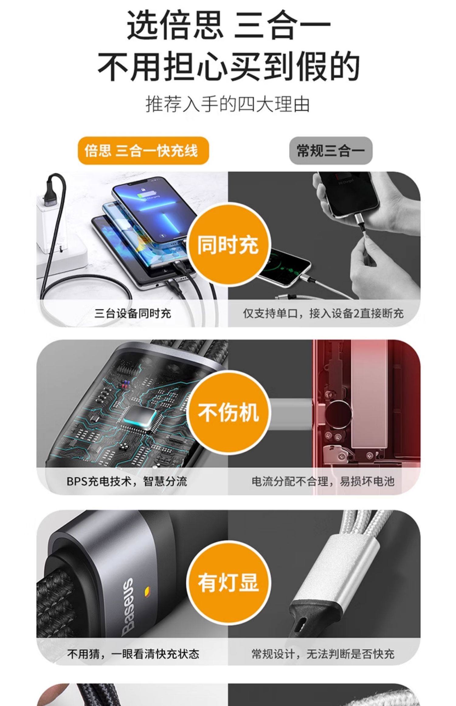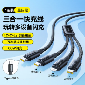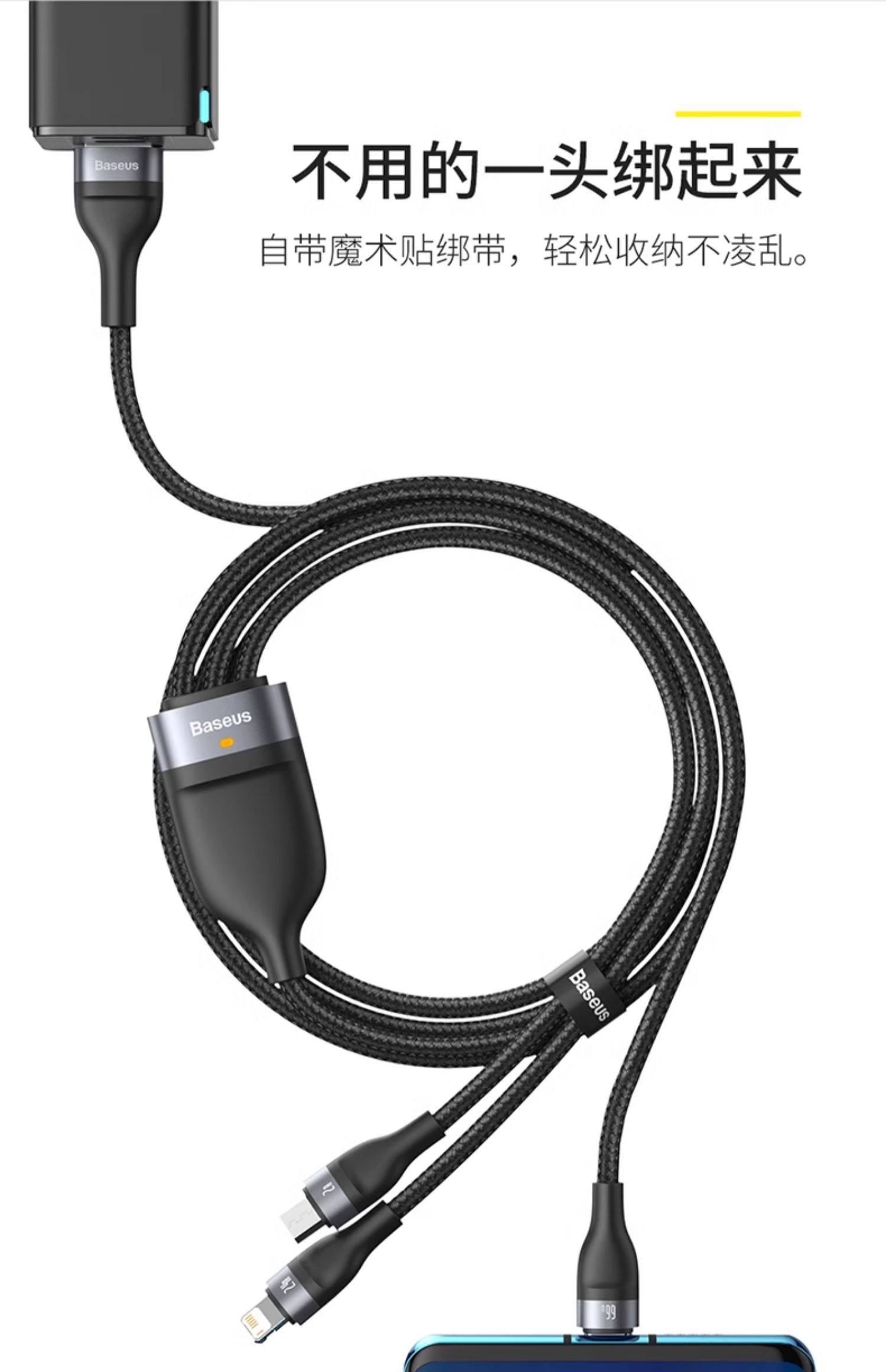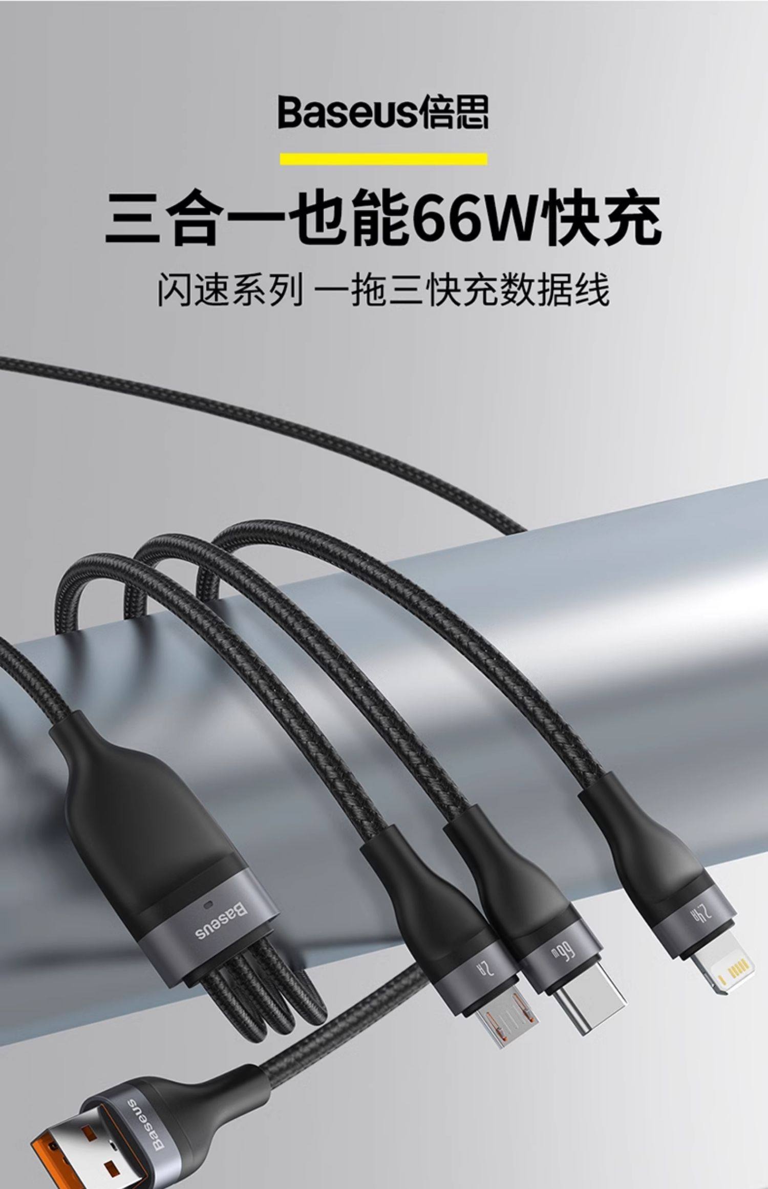 商品名称:倍思数据线三合一充电线器66W手机快充一拖三6A适用苹果16华为安卓typec三头mate60Pro车载iPhone15多功能5A