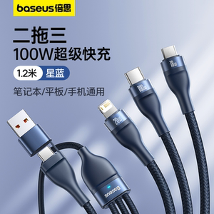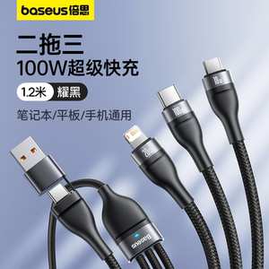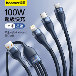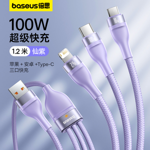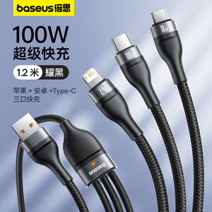 倍思数据线三合一充电线器66W手机快充一拖三6A适用苹果16华为安卓typec三头mate60Pro车载iPhone15多功能5A