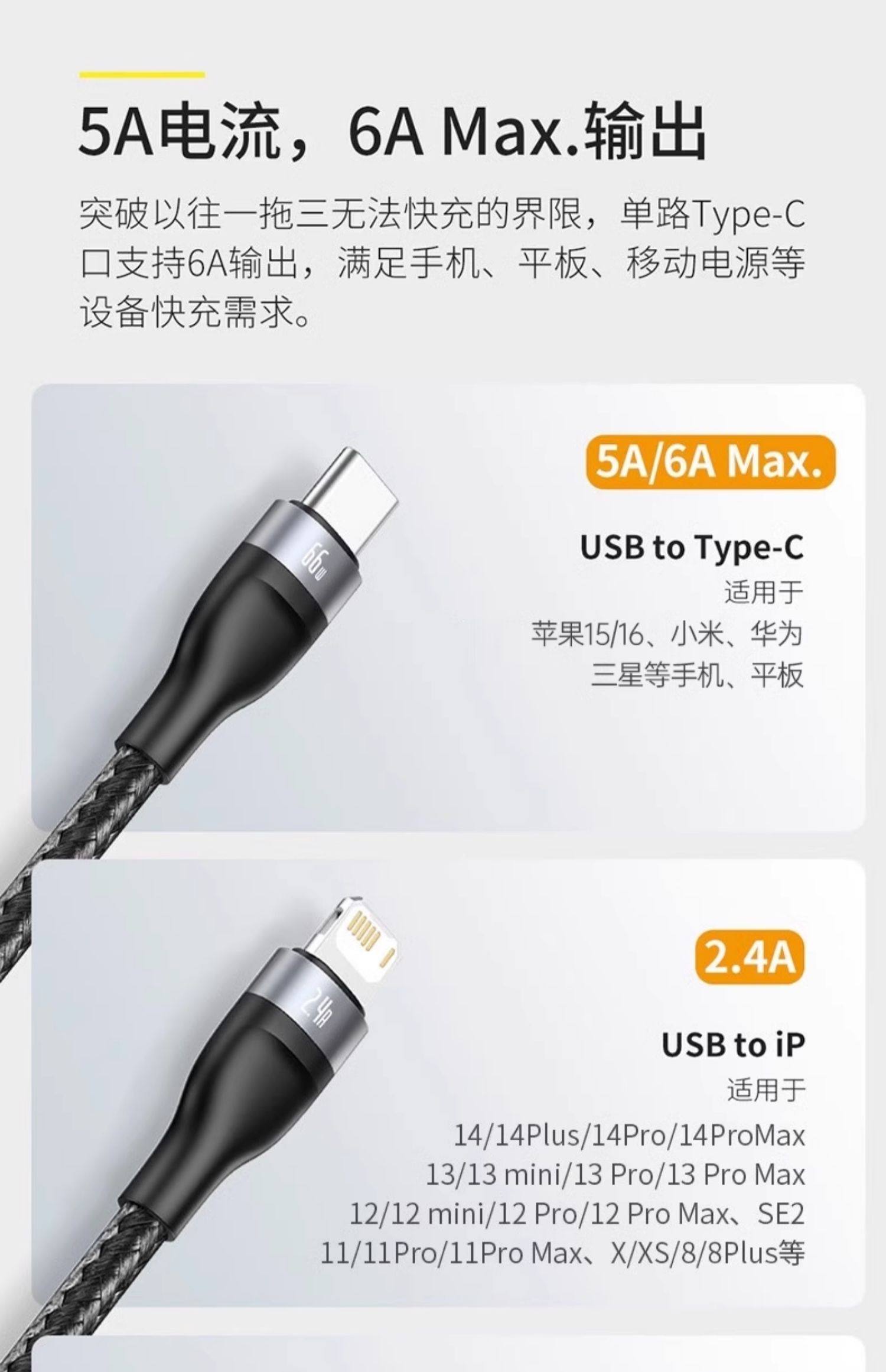 皓月白1.1米[苹果6-16+双Type-C]Type-C输入◆60W快充