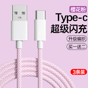 【升级编织】樱花粉超级闪充 【买一送二】共3条【Type-c】
