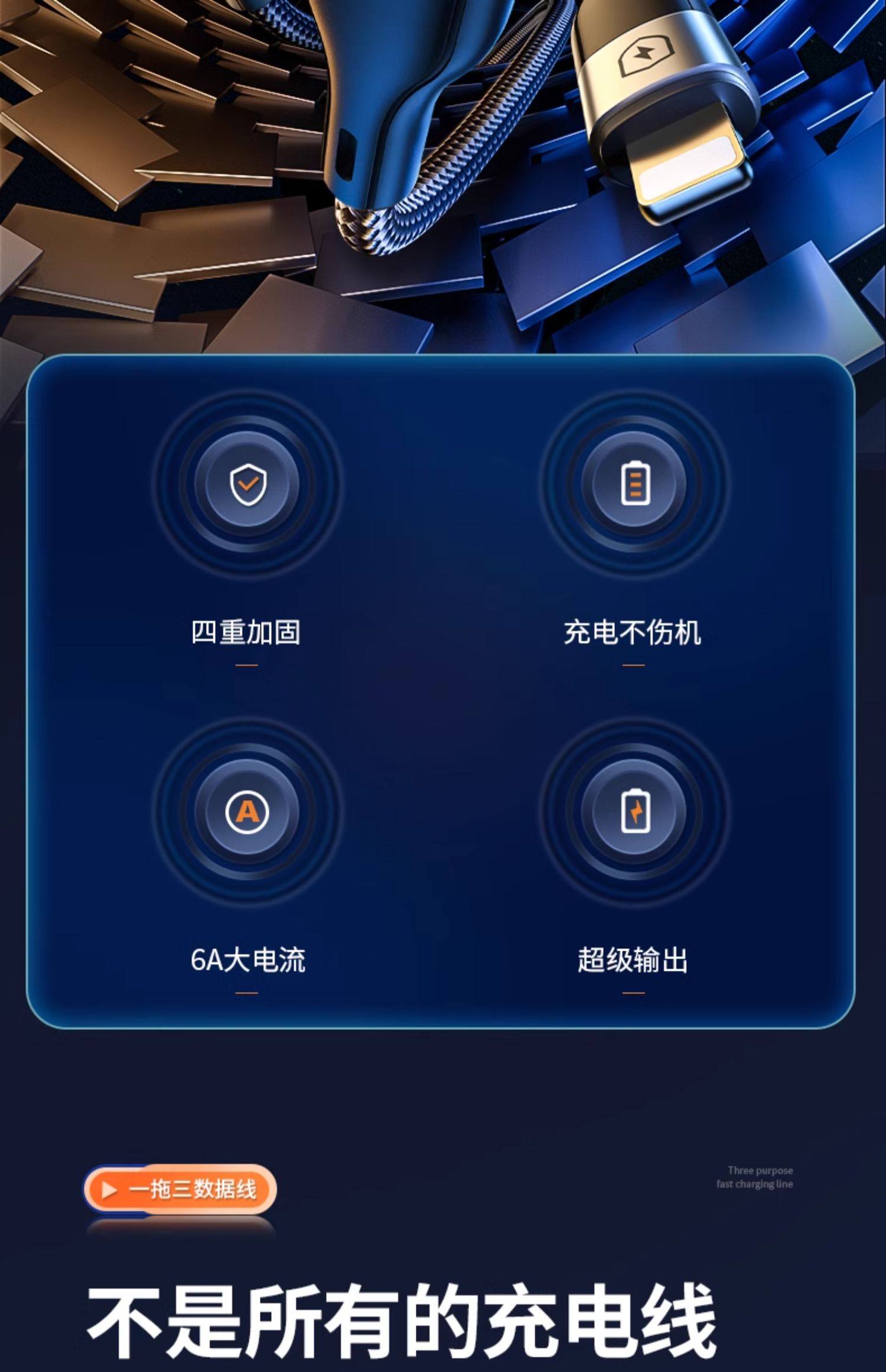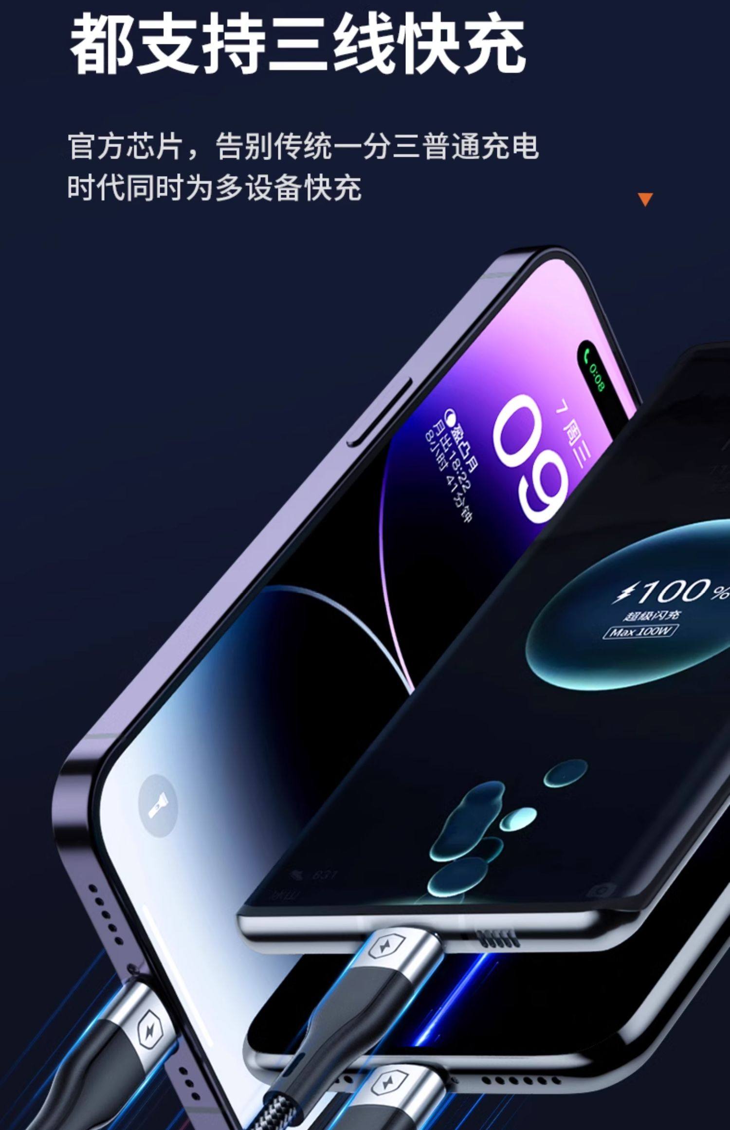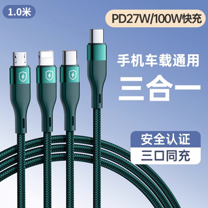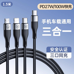 能适快充三合一数据线充电器一拖三手机通用充电线车载多头套装适用苹果安卓华为多功能充电头三头超级USB