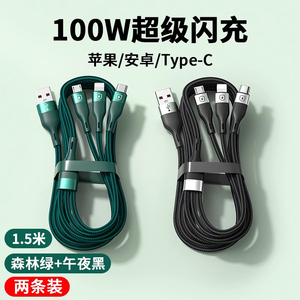 1.5m#【森林绿+午夜黑】两条装*三线快充*