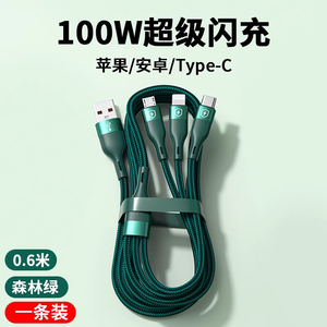 1.5m#【Typec一拖三快充】单条装森林绿