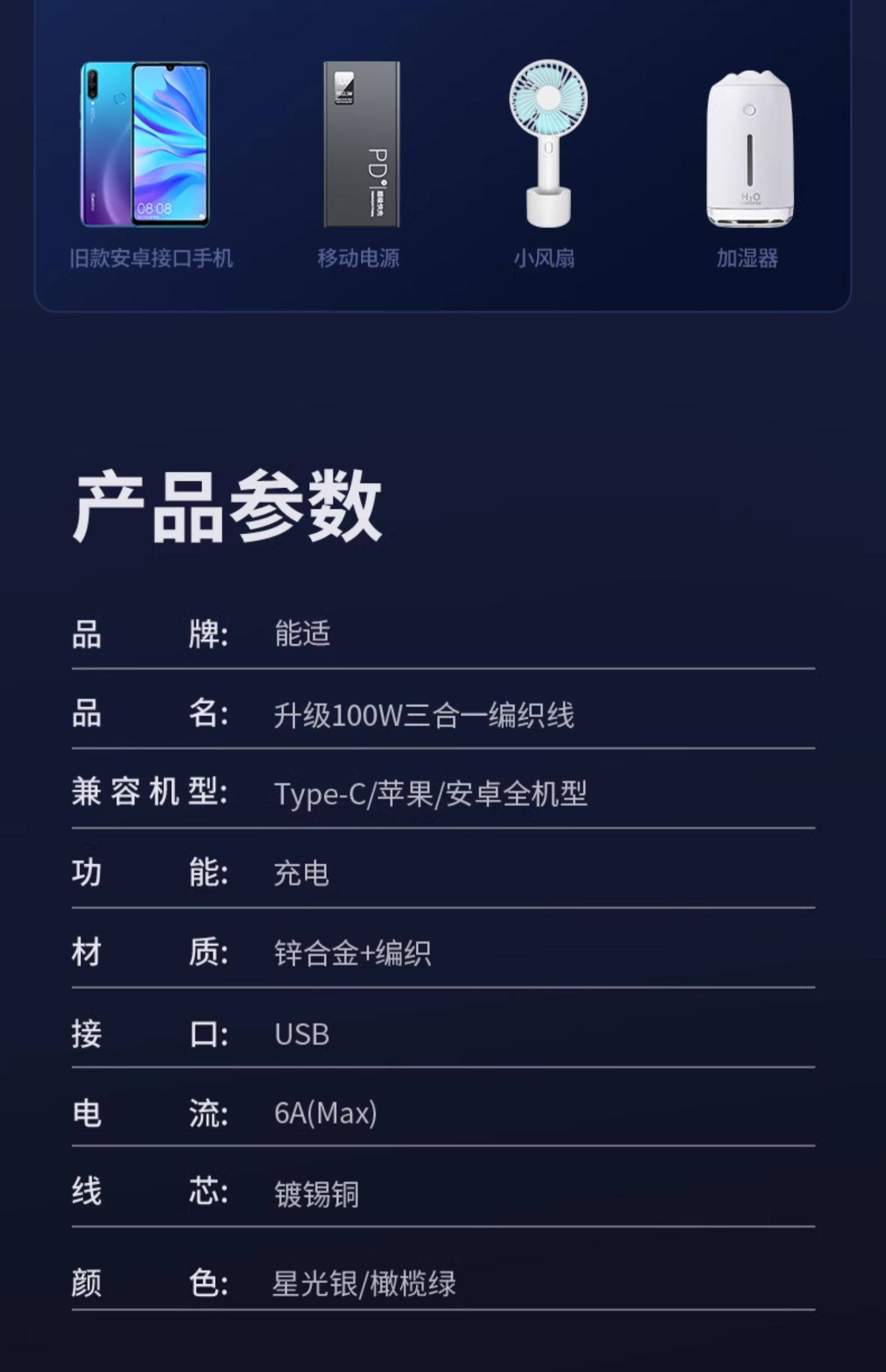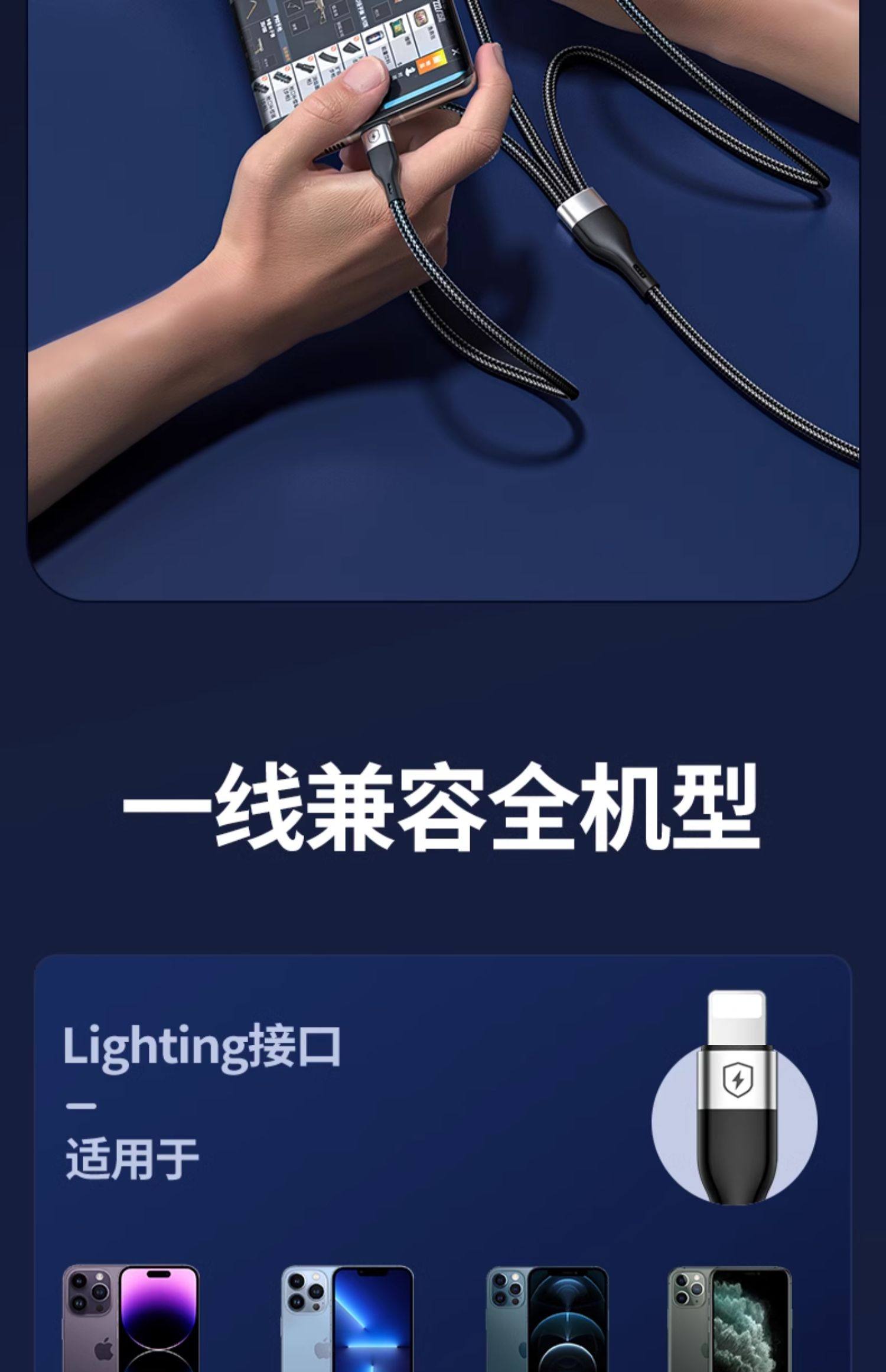 商品名称:能适快充三合一数据线充电器一拖三手机通用充电线车载多头套装适用苹果安卓华为多功能充电头三头超级USB