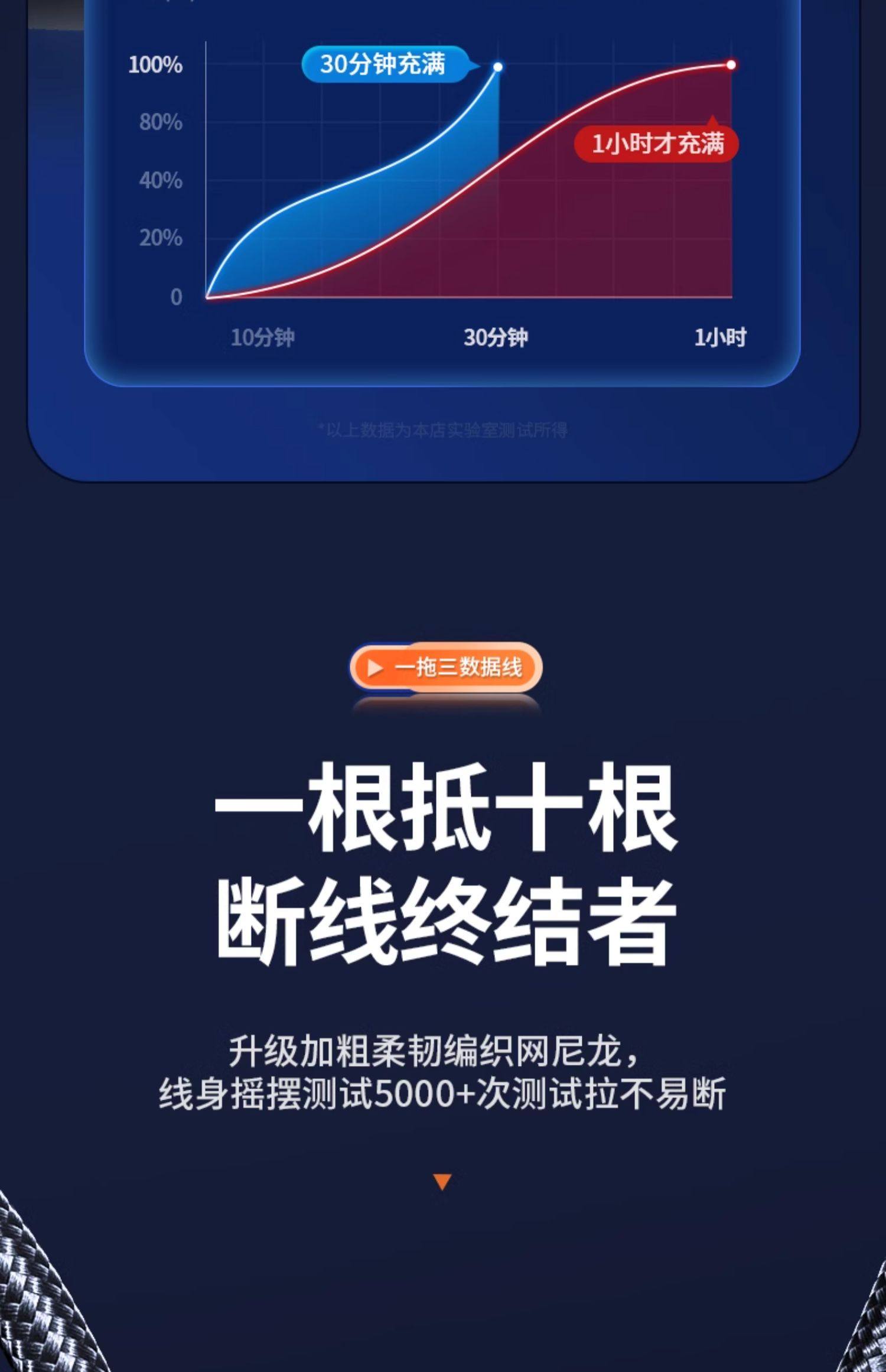 1m#【午夜黑】两条装*三线快充*