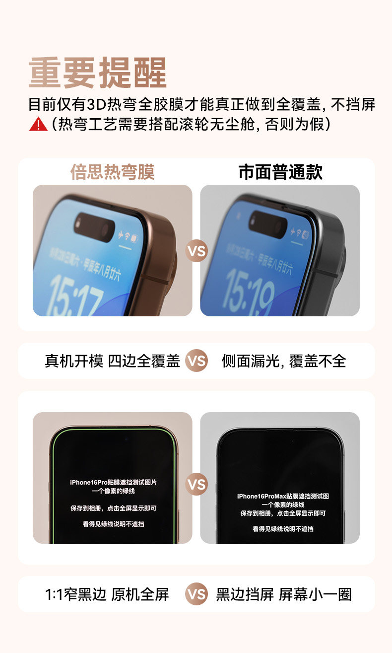 商品名称:【3D热弯康宁膜】倍思新款iPhone16ProMax钢化膜适用苹果15pro康宁手机膜16全屏覆盖pm防摔保护无尘仓贴膜猩