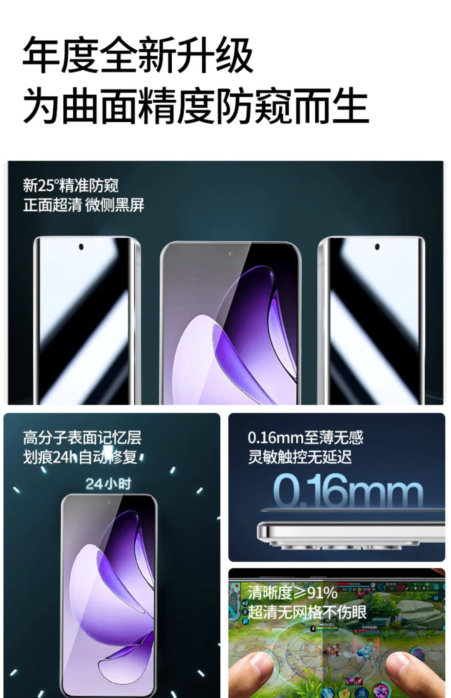 商品名称:适用opporeno13pro手机膜reno13新款钢化水凝膜适用oppo防窥膜全屏覆盖opreno曲屏防窥reon十三防摔保护por软