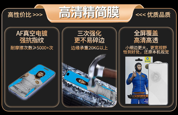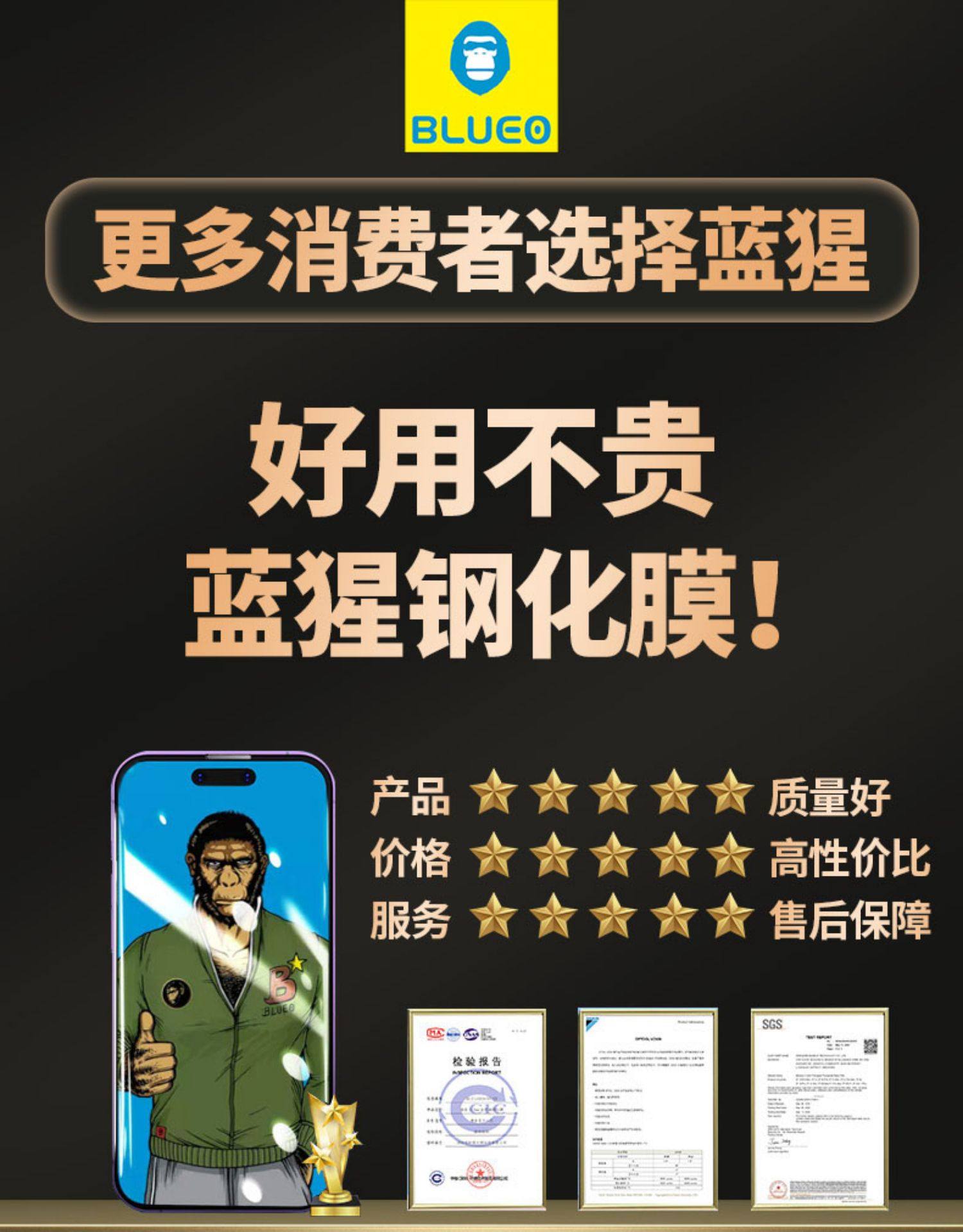 【蓝猩晶石钢化膜】细黑边无遮挡★超强硬度★超清高透