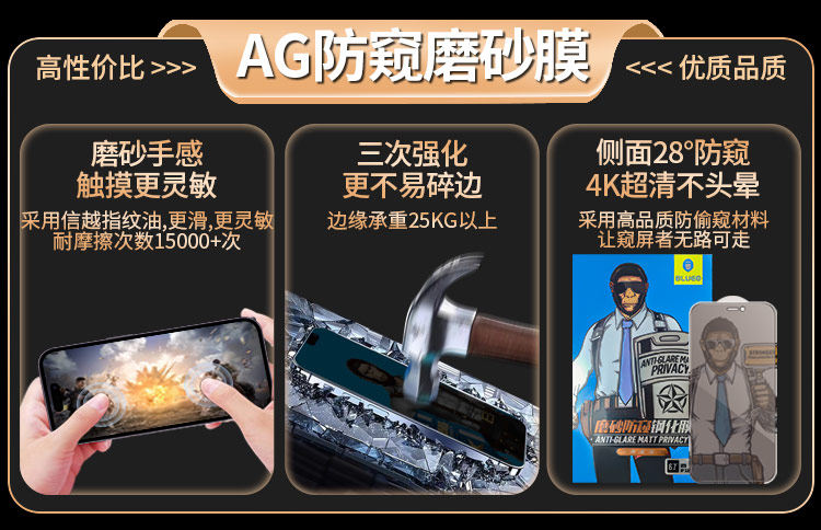 【28°高清防窥膜】新款实惠装★防摔防指纹★蓝猩新款