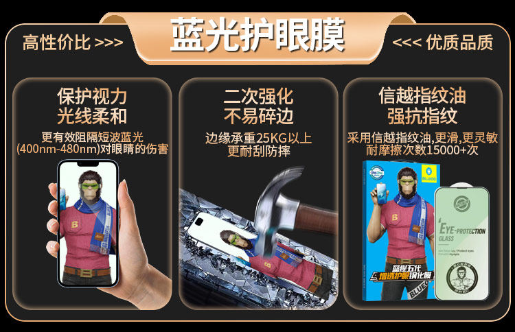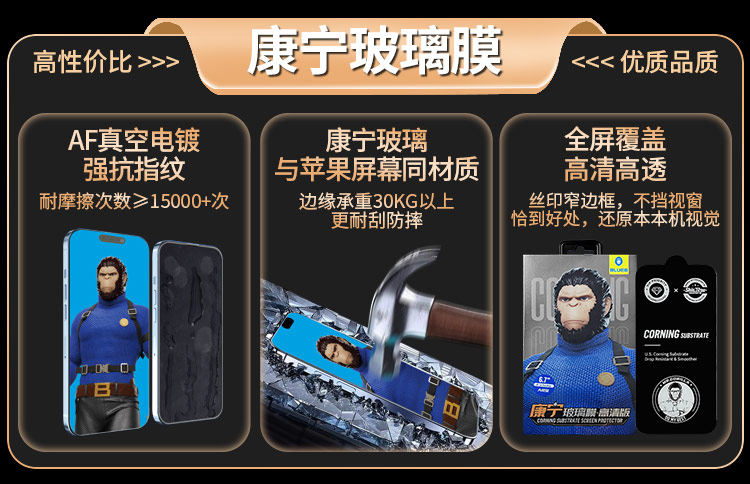 商品名称:蓝猩钢化膜16适用iphone16苹果15promax康宁iphone13大猩猩12蓝星blueo高清蓝14plus手机AR增透防窥磨砂14pro