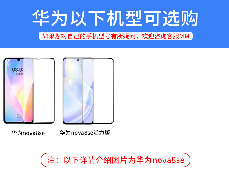 型号:华为nova8se系列钻石全屏钢化膜