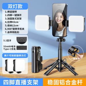 顶配款★典雅黑+双美颜灯【特稳铝合金◆720°俯仰拍◆真口袋收纳】送蓝牙遥控