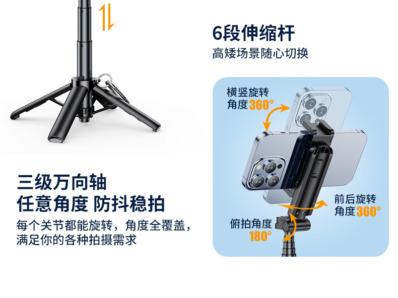 商品名称:旅行必备】2025新款自拍杆支架三脚架蓝牙自拍手柄旅游便携360度旋转手机防抖拍摄手持直播落地通用拍照神器