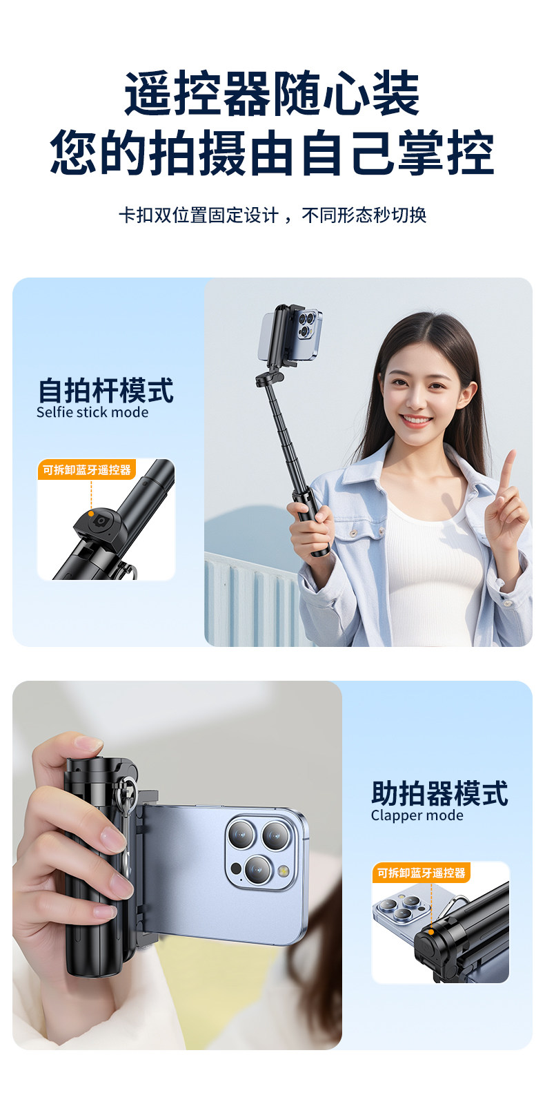 【兼容99%手机】适用苹果/华为/小米★兼容各种app★20米蓝牙遥控